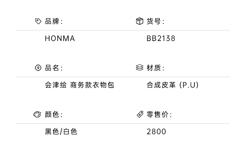 HONMA2022新款高尔夫衣物包潮流实用大容量刺绣运动手提包BB2138