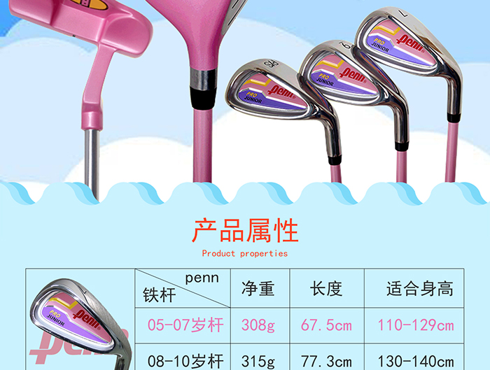 Penn球杆儿童高尔夫套杆6支杆含球包Penn8至10岁男孩下场比赛球杆正品特惠