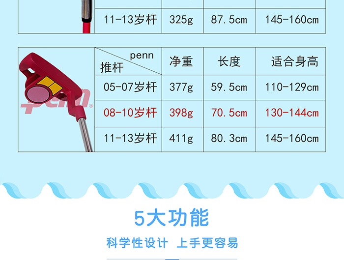 Penn球杆儿童高尔夫套杆6支杆含球包Penn8至10岁男孩下场比赛球杆正品特惠