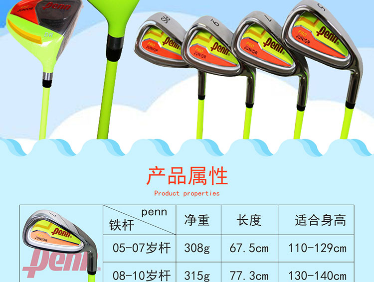 (Penn球杆]儿童高尔夫套杆7支杆含球包 Penn11至13岁男孩 比赛球杆 正品特惠