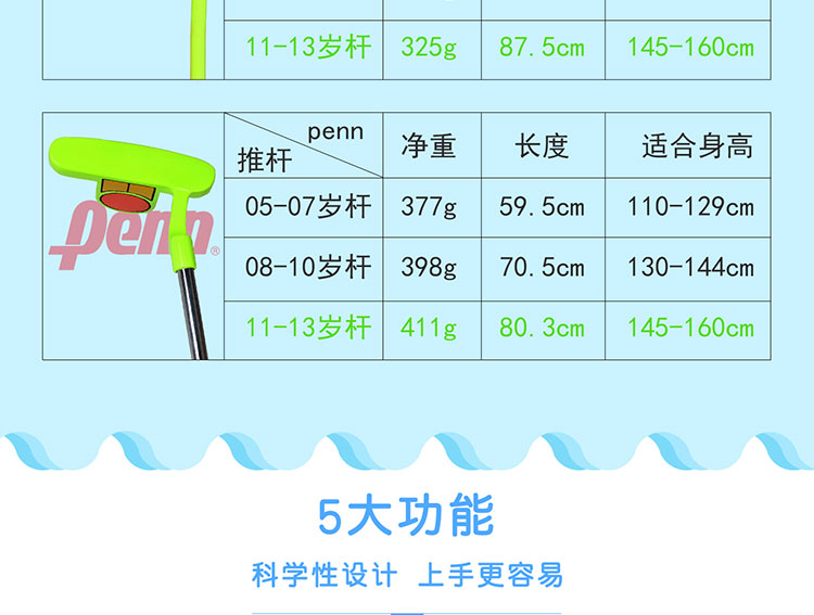 Penn球杆儿童高尔夫套杆7支杆含球包 Penn11至13岁女孩 比赛球 正品特惠