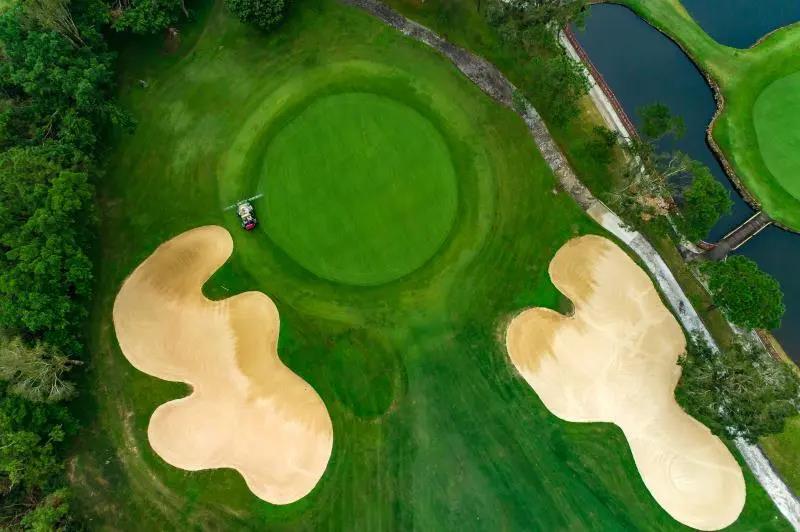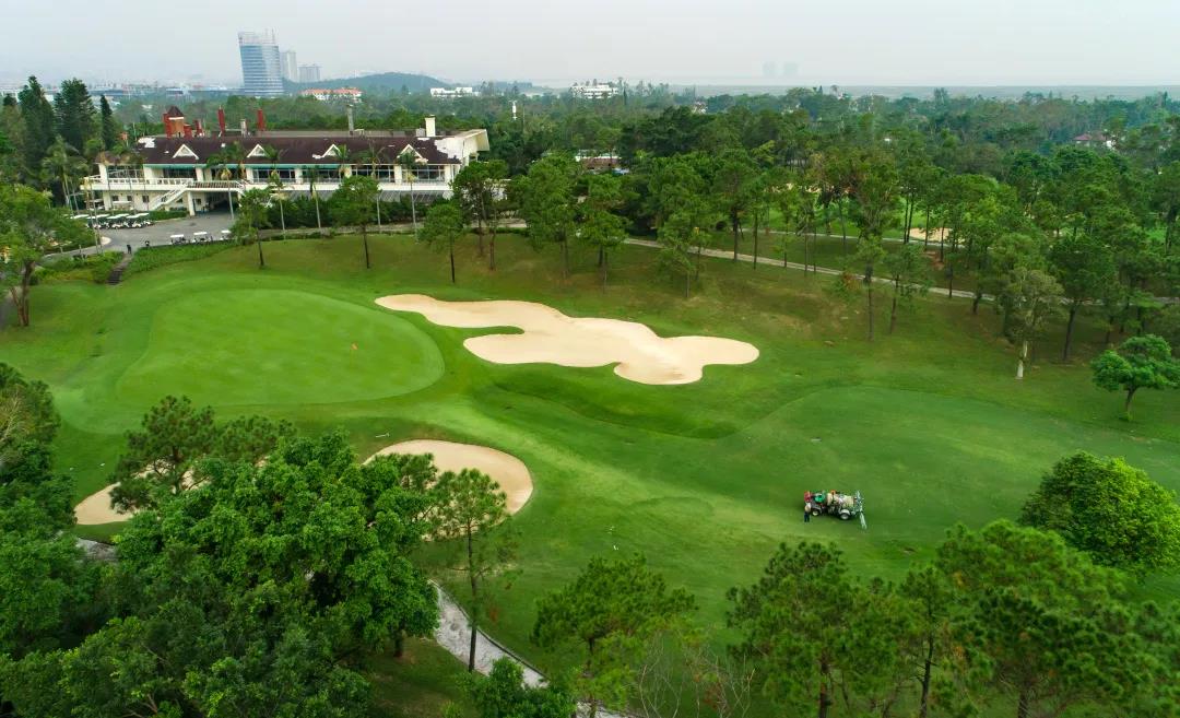 珠海国际高尔夫球会是在1985年中国诞生了第二家高尔夫球场,即珠海高尔夫俱乐部,球场占地1265亩,18洞标准设计,标准杆72杆,球道总长7052码,背靠凤凰山,面朝唐家港,球道两旁高大乔木耸立,球场景色灵秀动人。球场内备有球车,行驶在设计平坦的球道上,倍感惬意;当然,也为追求健康、体念徒步感受大自然的人士首选的高尔夫球场。