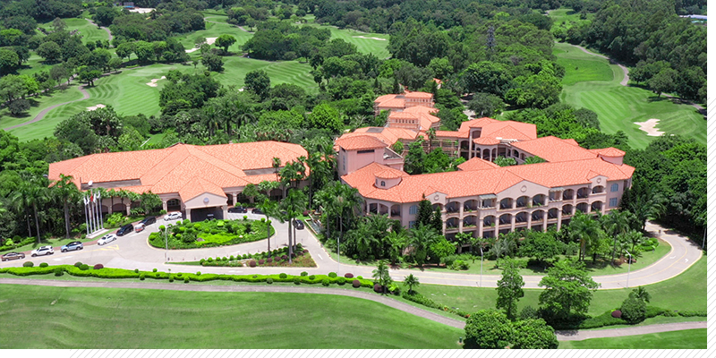 东莞峰景球会会所坐落于山丘上,造型独具特色,设计华美典雅,充分采用天然光线及山丘地势,视野广阔,青翠的球场和优美的湖光山色,尽入眼帘,让人与大自然融为一体。球场设计由经验丰富的Mr.Jim Engh负责,当中揉合了独特的天然环境地势及专业的球道设计构思,巧妙刁钻,球员在山峦起伏之间,既可欣赏到湖泊景致,又可享受击球乐趣,无论是个中好手或初学者,均能充分领略此中乐趣。球会拥有两座豪华会所:宽敞舒适的高尔夫会所和华美典雅的城市会所,总建筑面积超过19,000平方米。两幢会所均坐落于山丘上,设计充分采用天然光线及山丘地势,视野广阔,青翠的球场和优美的湖光山色,尽入眼帘。