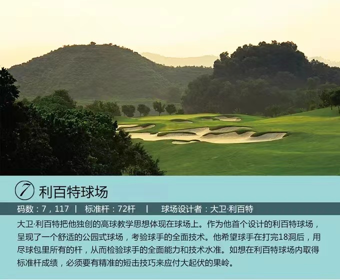 观澜湖东莞会所为观澜湖球场中的安妮卡,诺曼,奥拉沙宝,罗斯-保尔特和利百特球场服务。同时,它还为会员和来宾提供高尔夫练习打位和练习果岭。