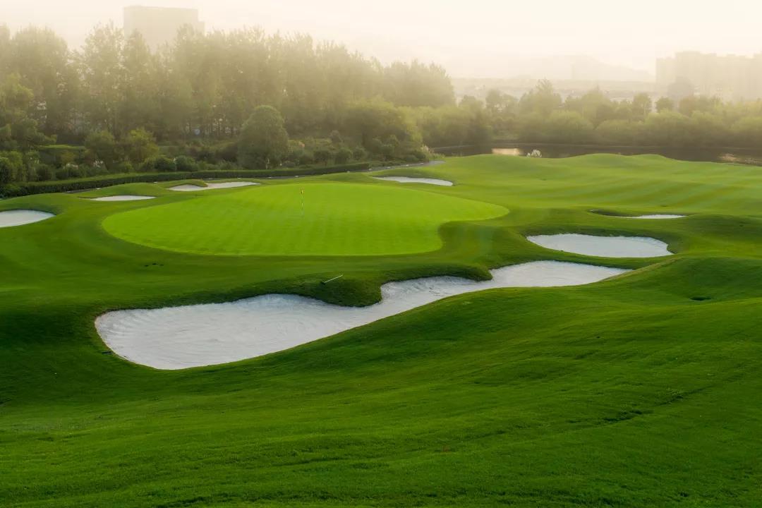 横店高尔夫球场坐落在全国最大的影视实景拍摄基地——横店,是18洞原生态山地高尔夫球场(标准杆72杆),球道总长7140码,由世界著名高尔夫球场设计师戴维新先生设计。球场属于山地森林风格,球道嵌于八面山原始森林之中。设计师充分利用八面山的自然环境,结合地形、地貌、气候和植被特色,使球场趣味与风险并存,极具策略性与挑战性。跌宕起伏的球道,造型独特的沙坑,大面积的水域,各种障碍相互交错,山势起伏又层次分明,能带给球手超乎想象的挑战。