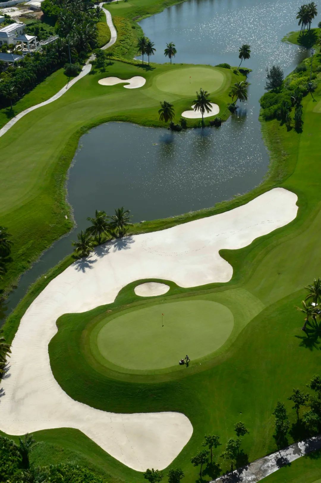 三亚海棠湾海中海高尔夫球会,是一个国际标准的18洞高尔夫球场,总占地面积约2000余亩,球道全长7132码。球场在宁静的内海与壮观的外海包围之下,18洞,洞洞见海,内海、外海、海中海,球会也因此得名。球场以会所为中心环海而建,汇集海水、沙滩、巨石、山体等自然元素构成了一幅美不胜收的自然画卷。