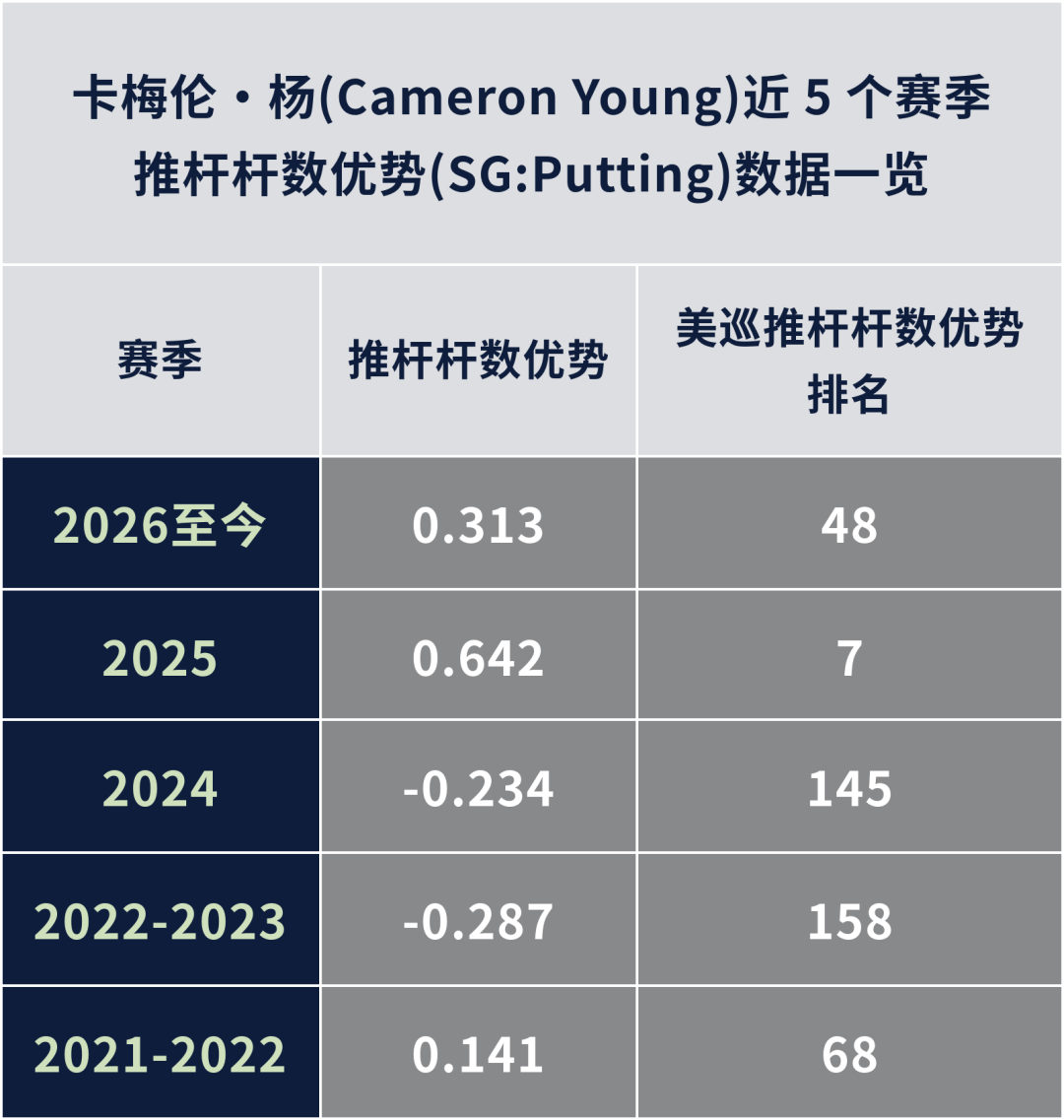 卡梅隆·杨从“千年老二”到球员锦标赛冠军,推杆成关键