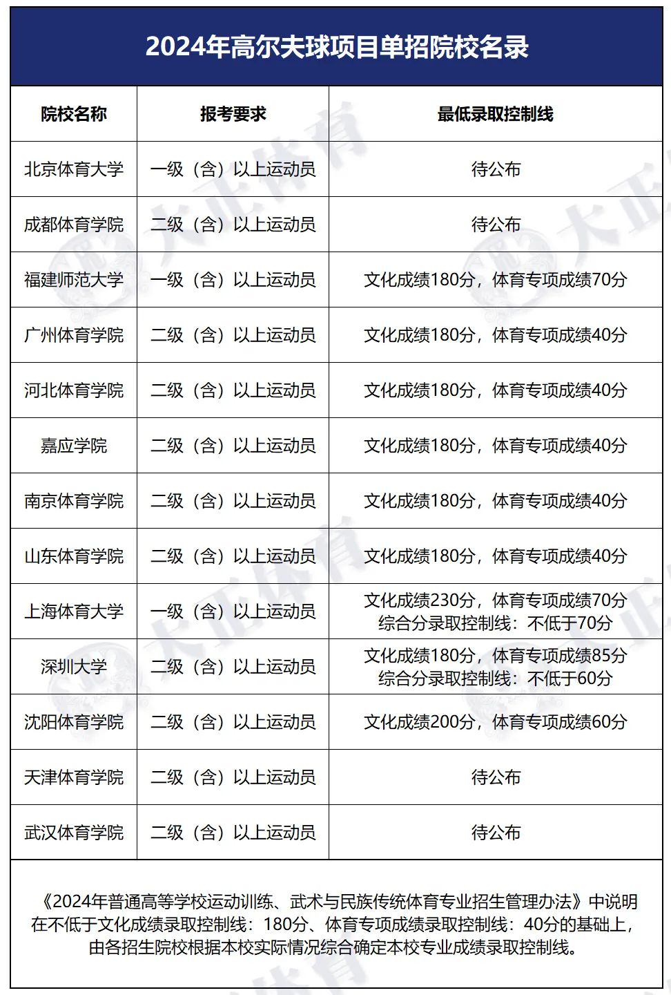 今年是高尔夫球纳入体育单招项目的第9年,目前各院校已完成2024年运动训练、武术与民族传统体育专业招生简章的发布。