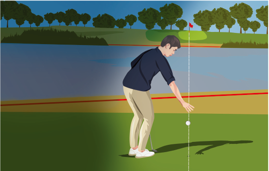 向后连线补救通常适用于罚球区和应对不可打之球的补救。该补救步骤被简化,只要球员将球抛在向后连线的线路上,并且抛球的落点在一支球杆长度的范围内即可。