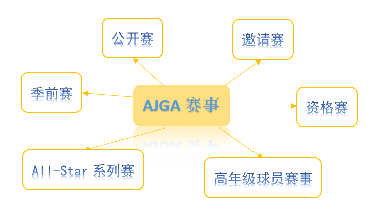 AJGA比赛类型繁多,每种比赛难度有所差别,且都有相应的准入条件。但最主要的是All-Star系列赛和公开赛,每年有60多场比赛。