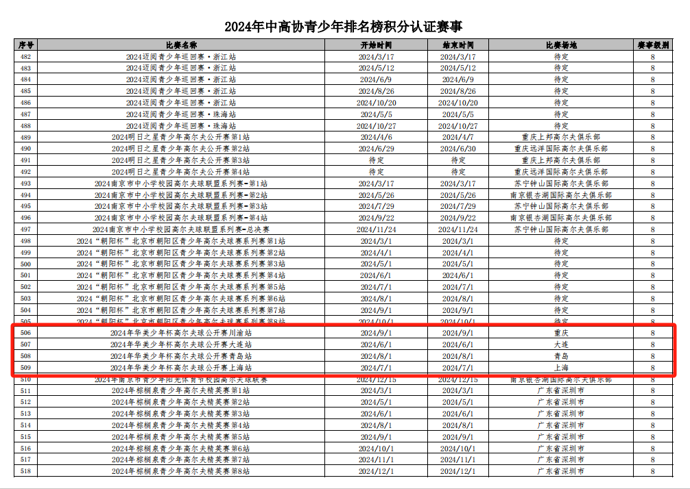▲2024华美少年杯高尔夫球系列赛(省外赛事计划)