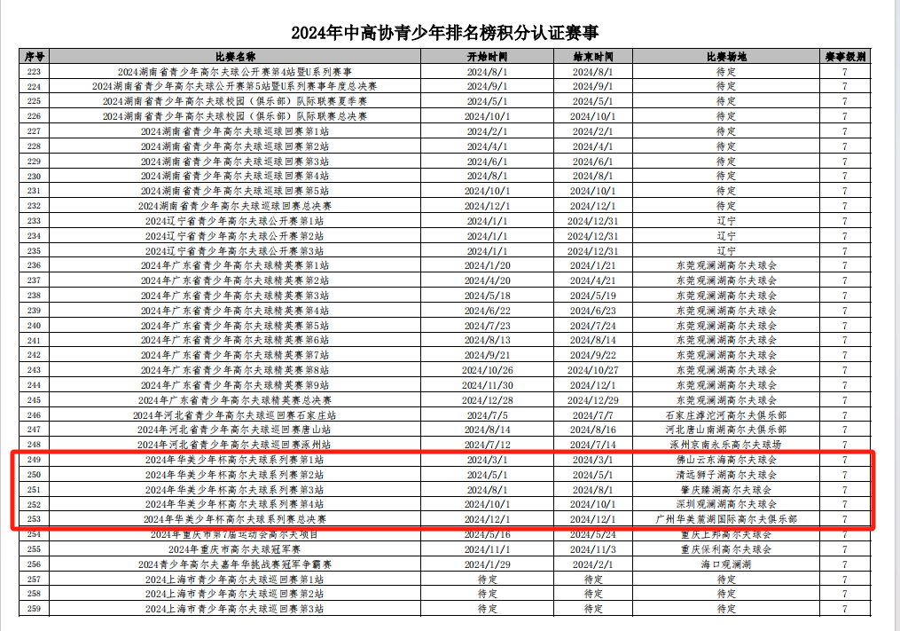 ▲2024华美少年杯高尔夫球系列赛(广东省内赛事计划)