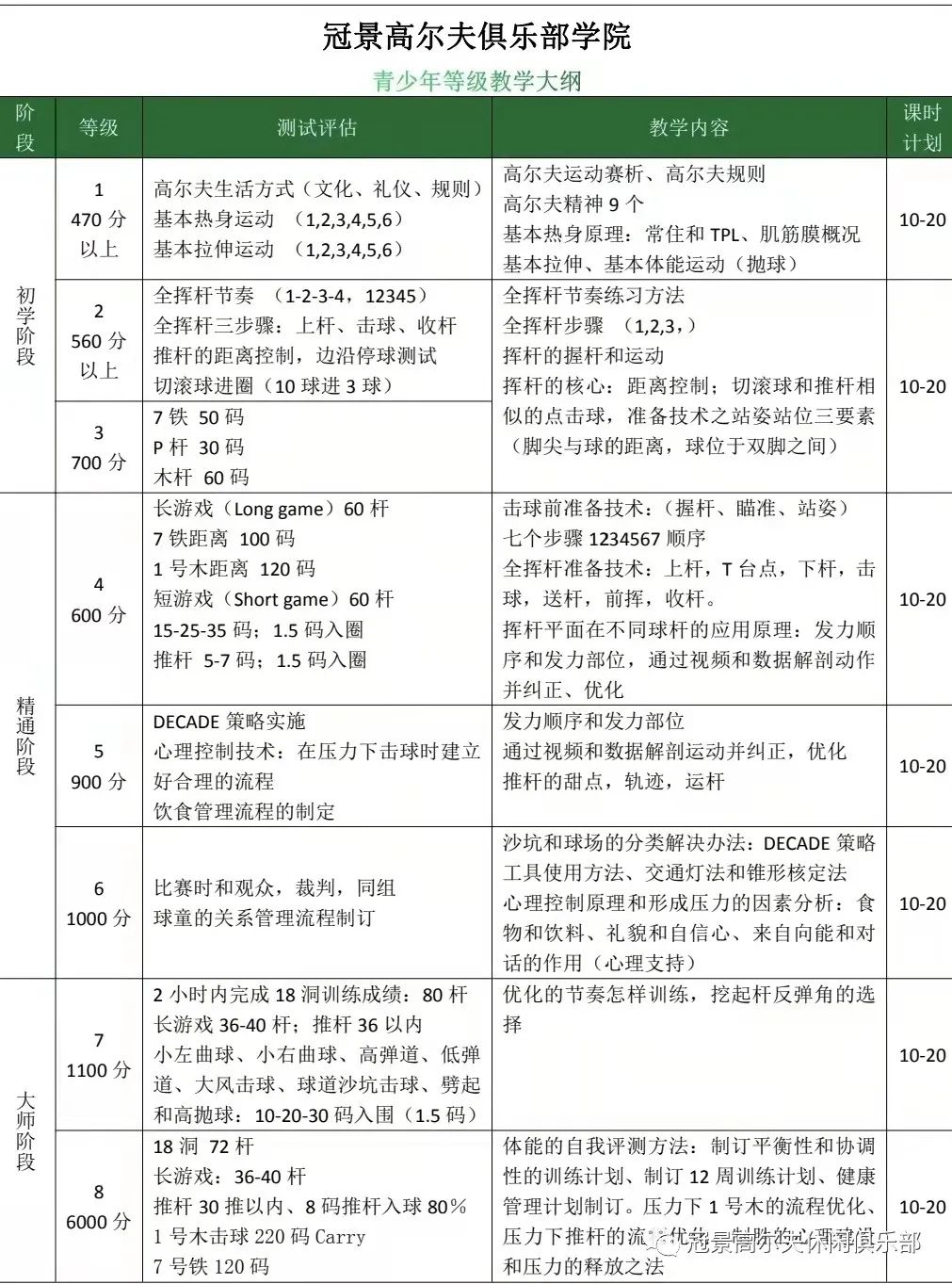 广州唯一一家 按四个等级标准来划分教练的高尔夫学院
