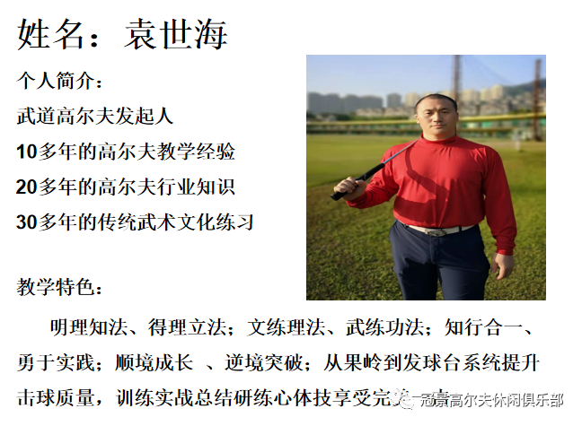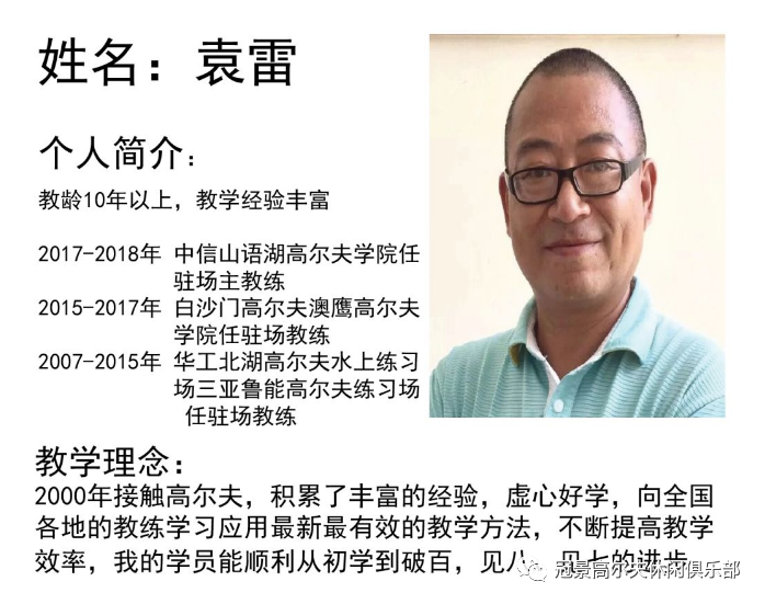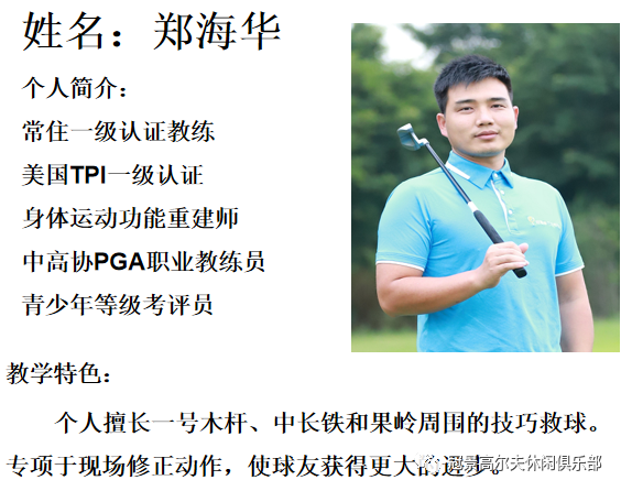 教练,主要以高尔夫教学、青少年高尔夫教学为主,因材施教,为学员定制个性化学习方案,并开设高尔夫专项体能课程,高尔夫运动心理学,高尔夫运动损伤及预防课程等特色专项课程,高效、有针对性的帮助广大高尔夫爱好者提升球技。
