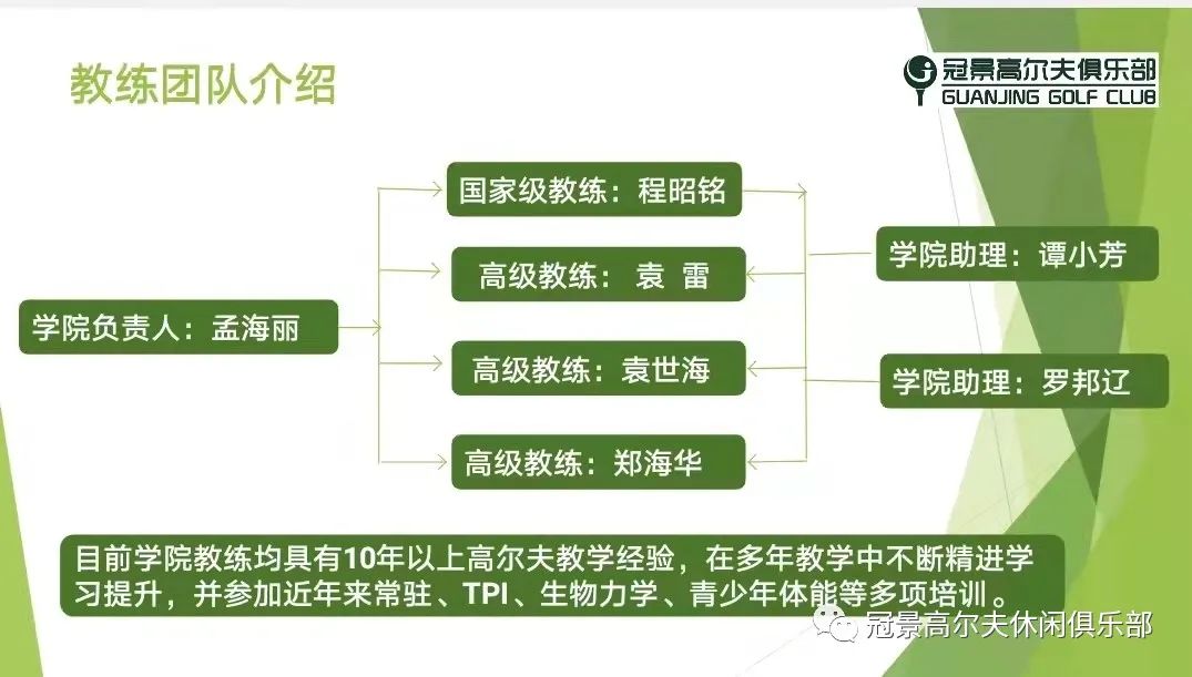 广州冠景高尔夫学院隶属于冠景高尔夫俱乐部,教学团队拥有多名专业资深