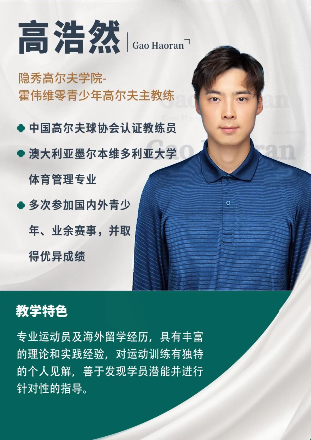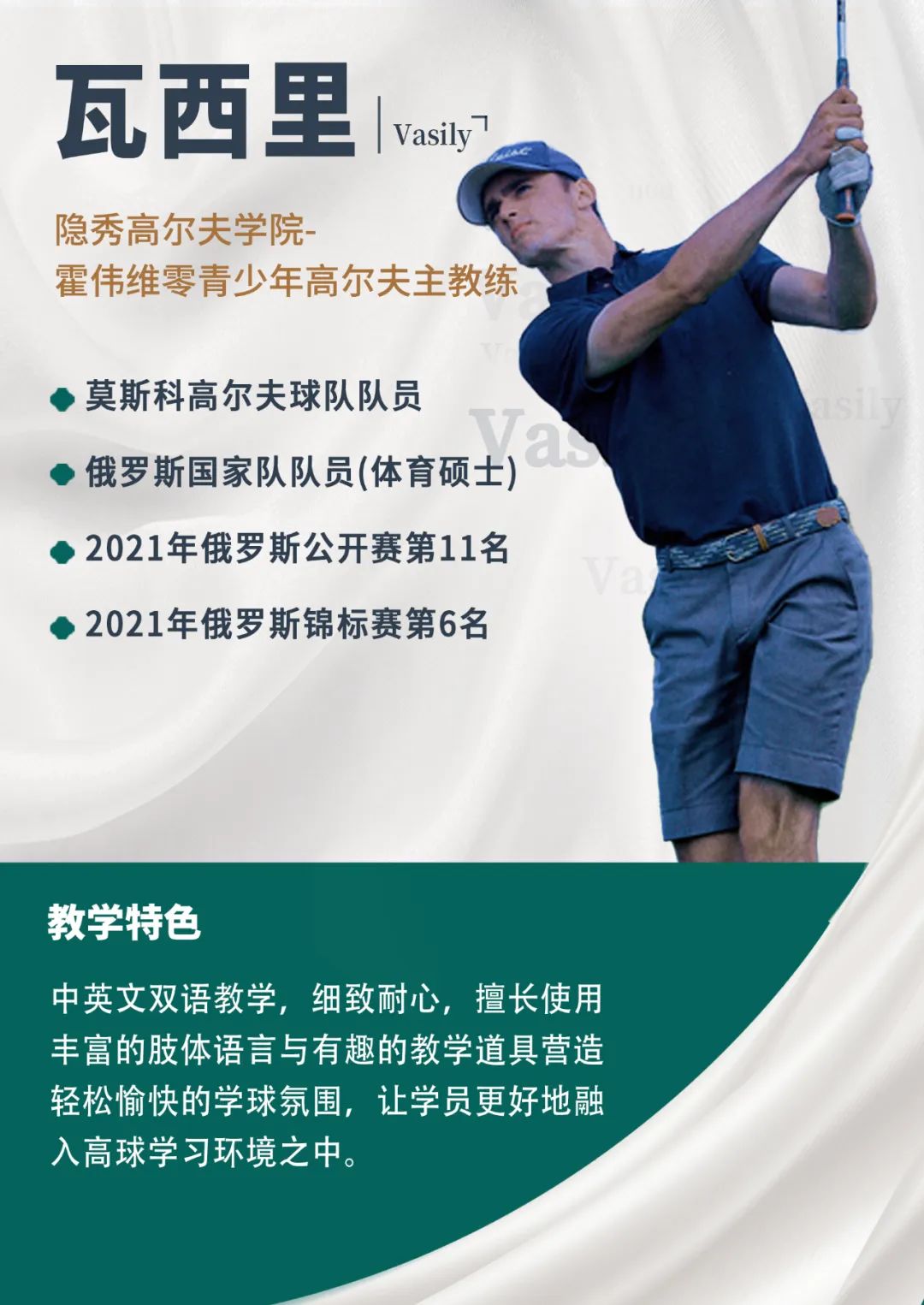 学院成立以来,专注青少年高尔夫培养,教学模块覆盖兴趣启蒙、特长提升、专业考学、职业竞技,用务实的工匠精神陪伴孩子从零到冠军到职业的全成长路径,10年青少年高尔夫教学的坚守,50余个青少年冠军的辉煌成绩,让维零在业内有口皆碑,成为青少年高尔夫教学领域的王牌之师!