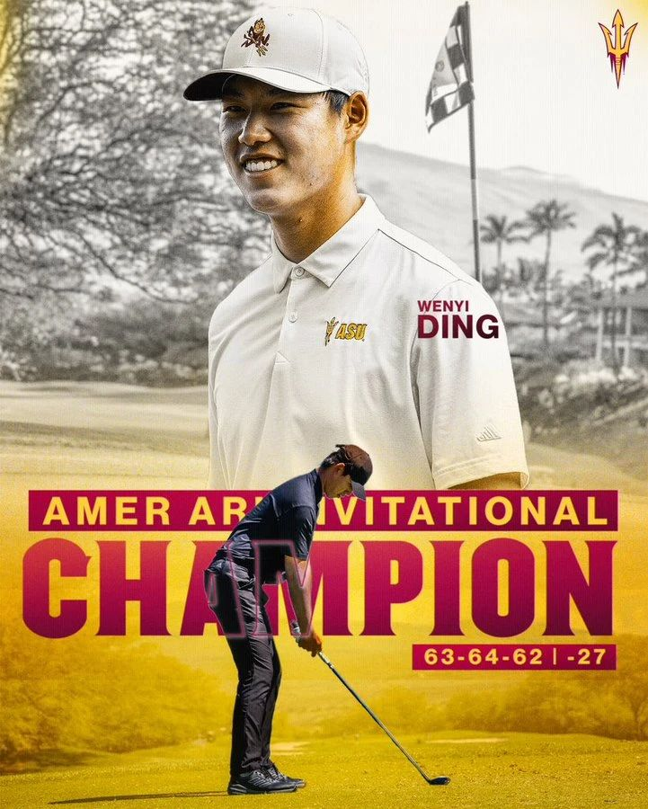 在结束的美国大学联赛艾玛艾瑞邀请赛 (The Amer Ari Invitational) 中,代表亚利桑那州立大学出战的天津市高尔夫球队队员丁文一3轮交出63-64-62的惊世记分卡!以189杆 (-27) 的总成绩,完成不可思议的9杆大胜。勇夺这场全美最高水平大学赛事之一的个人冠军。