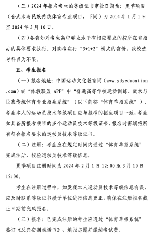 普通高等学校运动训练、武术与民族传统体育专业招生考试是普通高等学校招生工作的一部分。根据《体育总局办公厅教育部办公厅关于印发的通知》(体科字(2023】188号)文件,结合学校实际情况,制定本简章