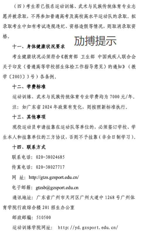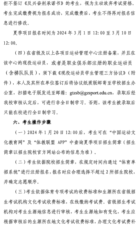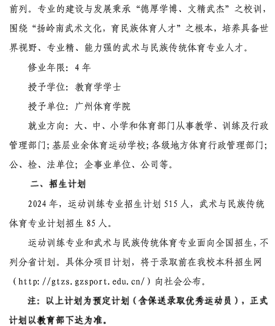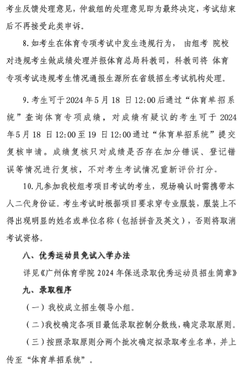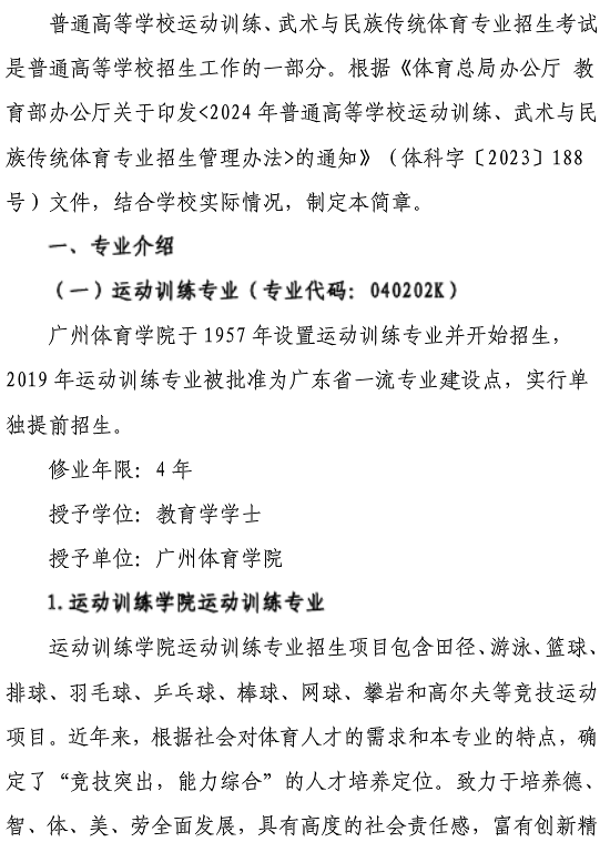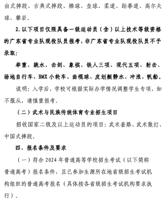 广州体育学院2024年体育单招招生简章