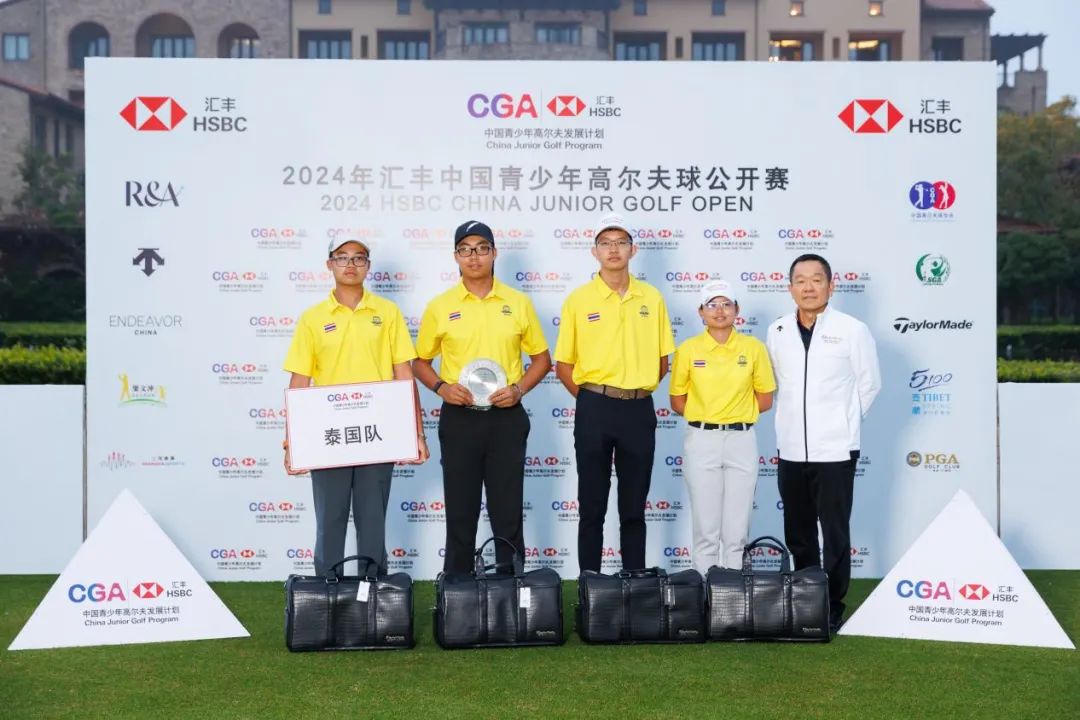 团队赛方面,由任怡嘉、王浩一、唐榕泽和李政谦四位球员组成的中国队,以3轮总成绩629杆(-19)的绝对实力,再次捧起冠军奖杯,自去年公开赛夺得团队胜利后成功卫冕。中国香港队3轮总成绩来到682杆(+34),获得团队亚军。泰国队以692杆(+44)的总成绩收获团队季军。