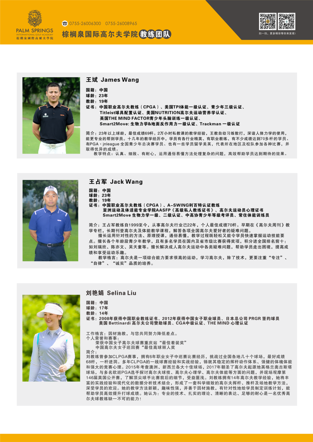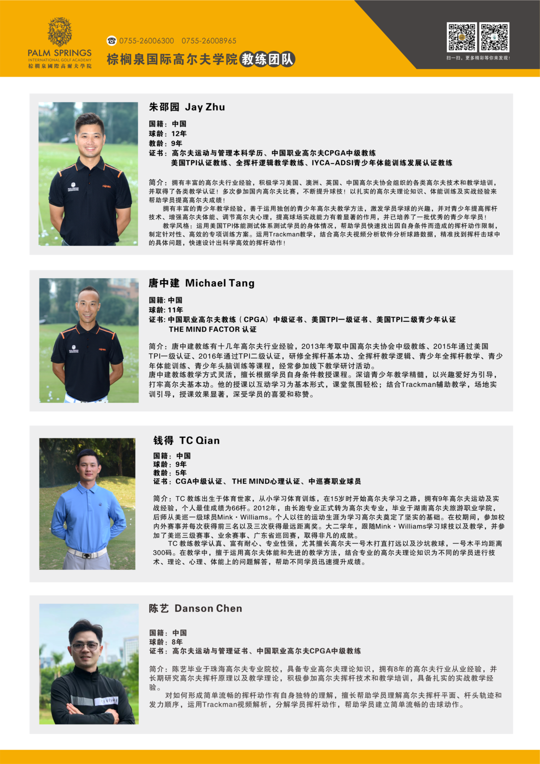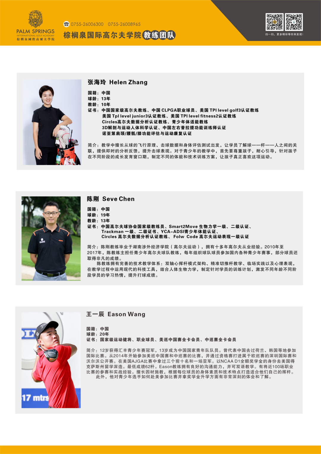 棕榈泉国际高尔夫学院教学团队简介
