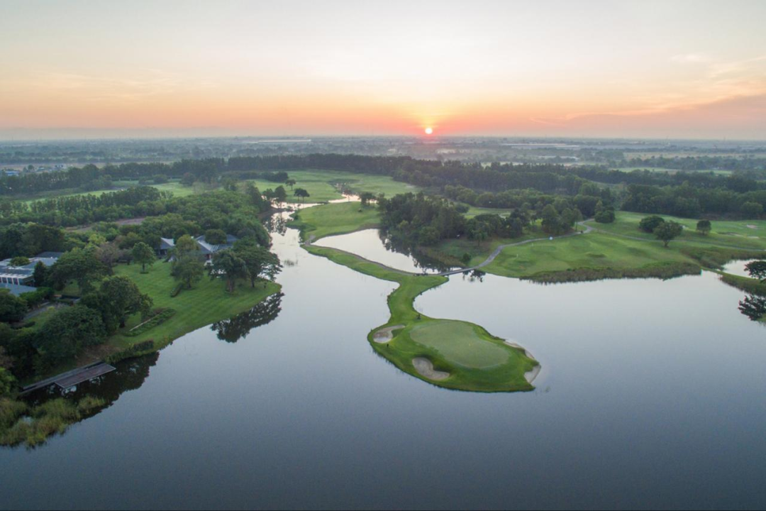 Amata Spring乡村俱乐部是一家私人高尔夫乡村俱乐部,该球场由 Schmidt-Curley Design 的著名高尔夫球场建筑师 Lee Schmidt 设计,作为泰国最大锦标赛的举办地,已成为世界各地电视上的中流砥柱。标志性的第 17 洞“漂浮果岭”球洞是世界高尔夫最著名的球洞之一。 球手们来到一个高架发球台,注视着坐落在广阔的阿玛塔泉湖中的果岭开球。在壮观的阿玛塔城堡下方需乘船方可抵达果岭推杆。