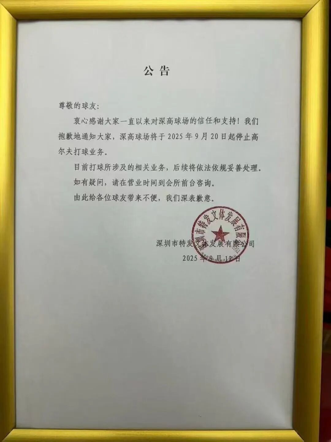 • 2023年10月,深高练习场公告于11月初停止营业,因区域被纳入地铁建设范围,标志着球会部分功能正式退出历史舞台。
