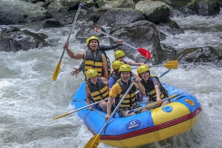 乌布西边郊区的阿勇河是漂流的好去处。阿勇河全长11km,用时要2小时,有22个激流点,很刺激。河流在深窄的峡谷中急进,两旁是赤道风格的热带雨林,藤蔓密布,椰树成林。整个线路上,迎面而来的景观,忽而是茂盛的树林,忽而是辽阔的田野,忽而是阴森的蝙蝠洞,忽而是美丽的瀑布,变换无穷,令人赞叹不已。漂流时间选在下午最好,因为这是游人较少。
