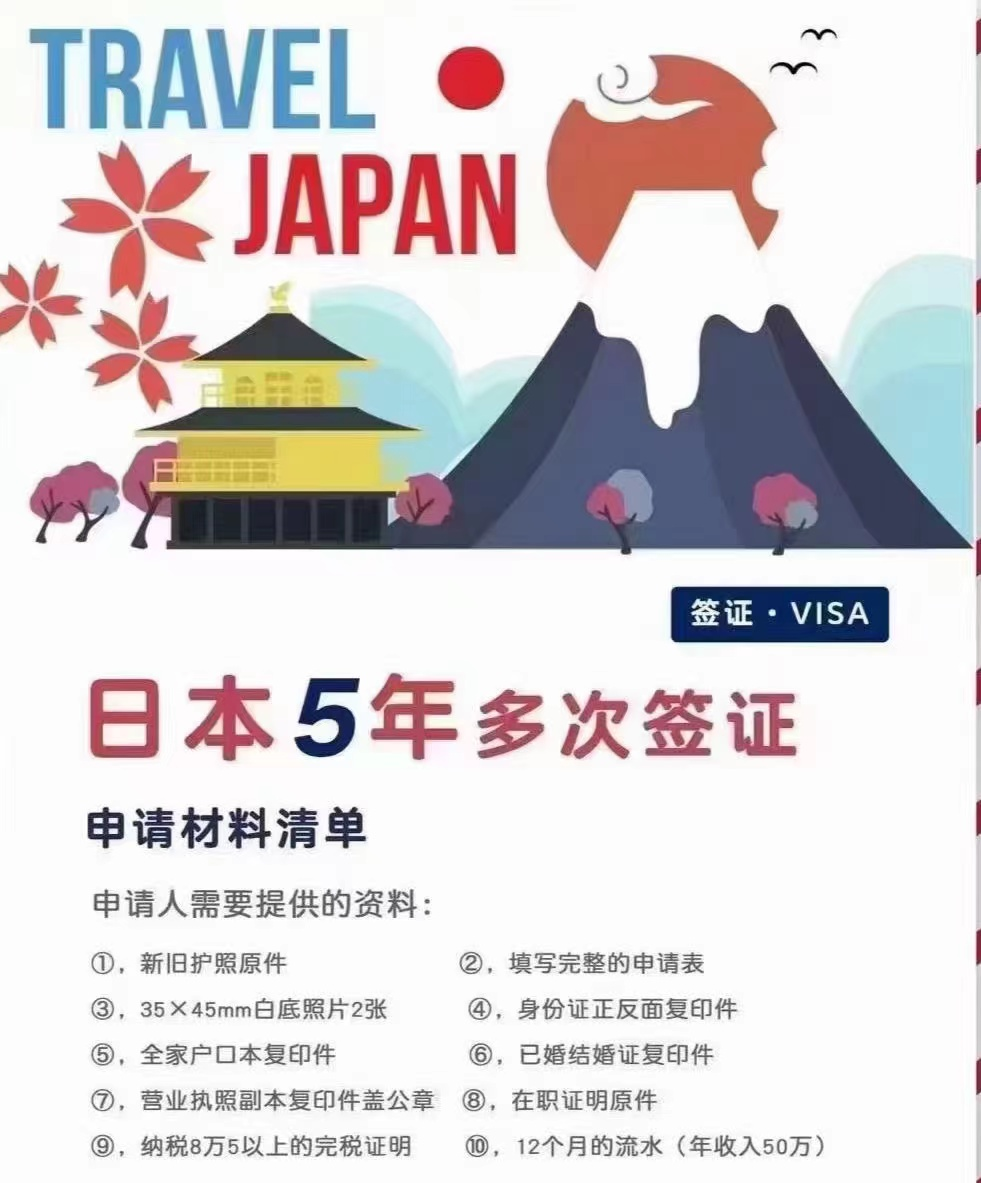 目前仅开放了赴日5年多次旅游签证,所需资料如下: