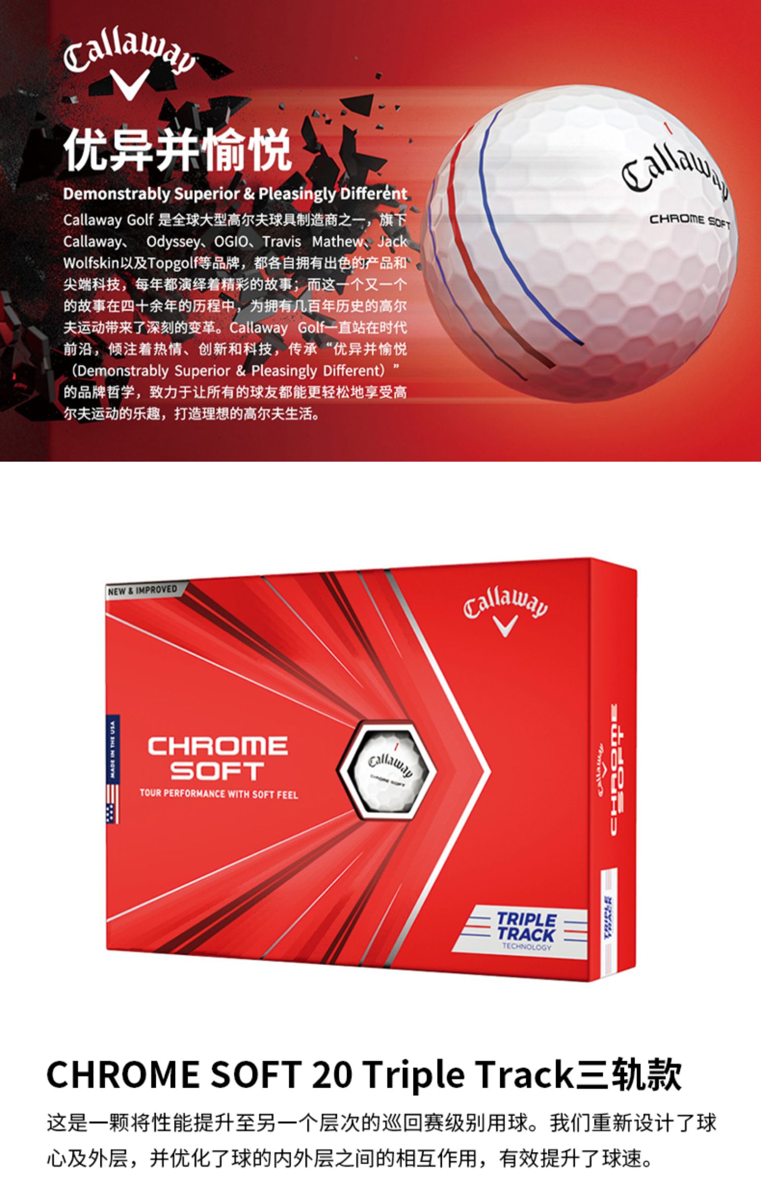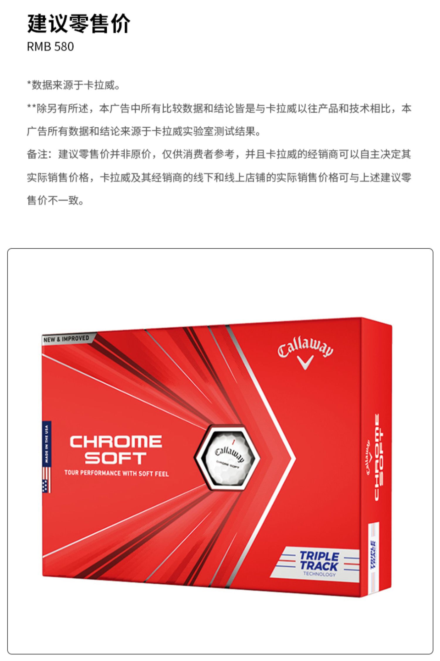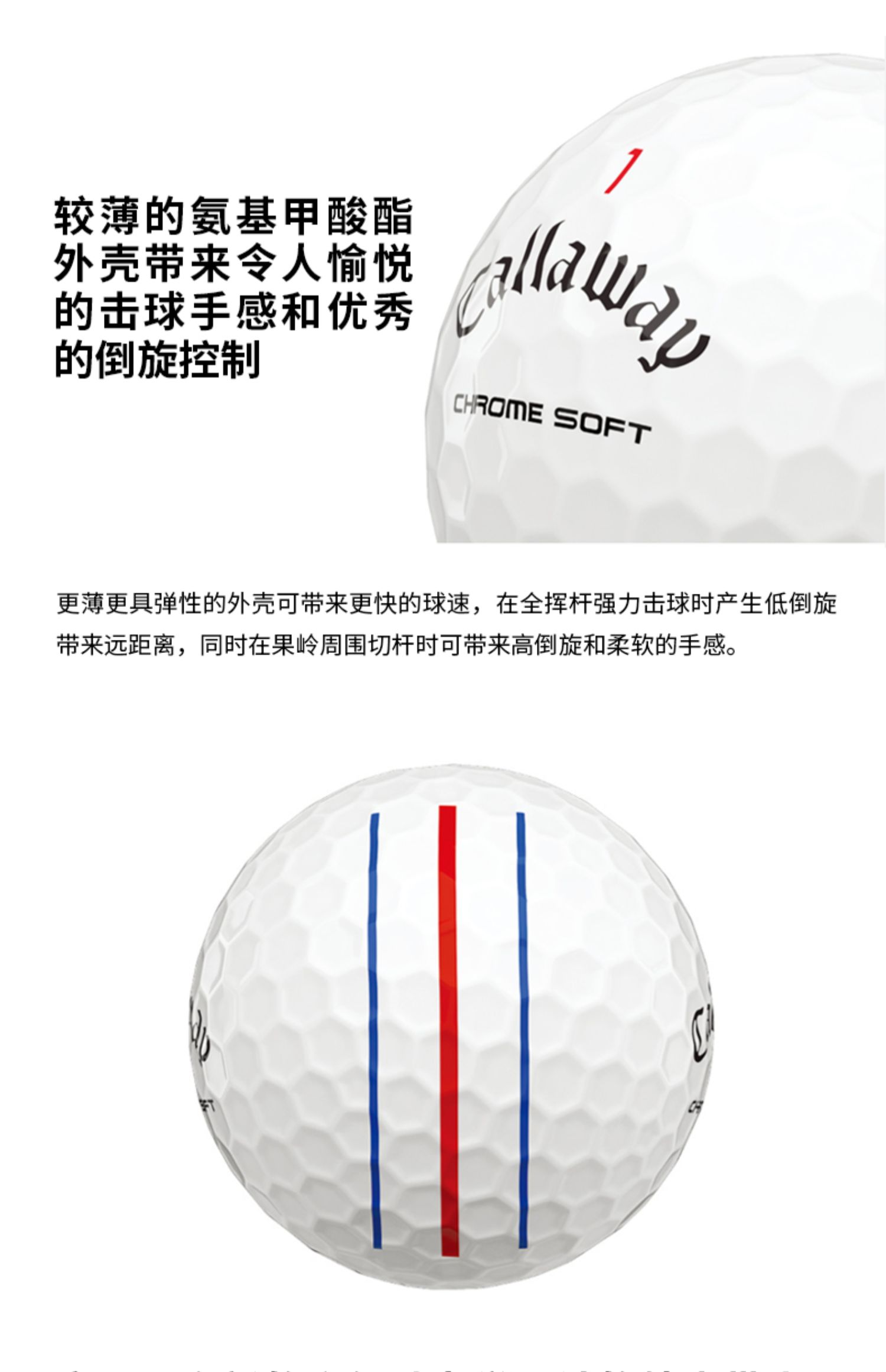 Callaway卡拉威官方高尔夫球全新CHROME SOFT三轨道瞄准线四层球