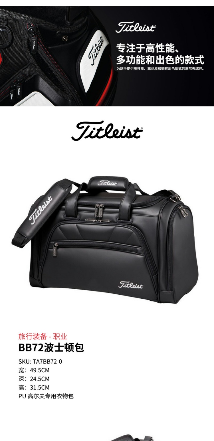 Titleist高尔夫衣物包BB72波士顿包Boston衣服包旅行包TA7BB72