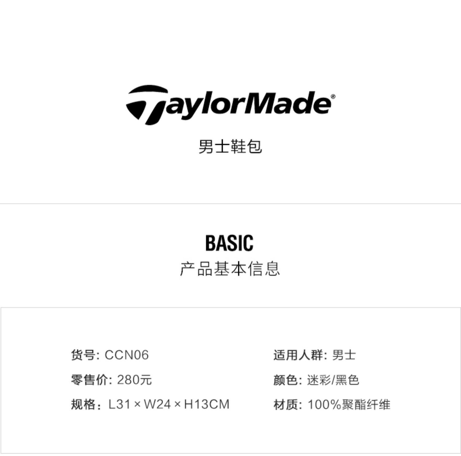 TaylorMade泰勒梅高尔夫男士运动时尚golf大容量新款便携手拿鞋包