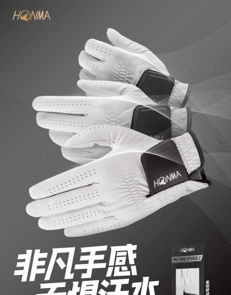 HONMA 2022新款高尔夫仿生羊皮手套 柔软舒适 贴合防滑GC13225