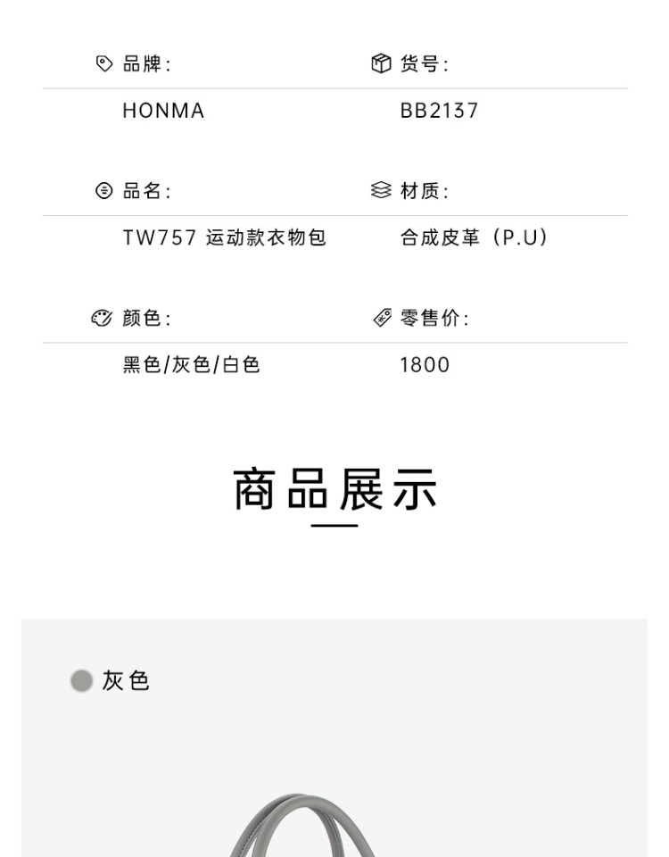 HONMA2022新款高尔夫衣物包休闲时尚健身运动包大容量BB2137