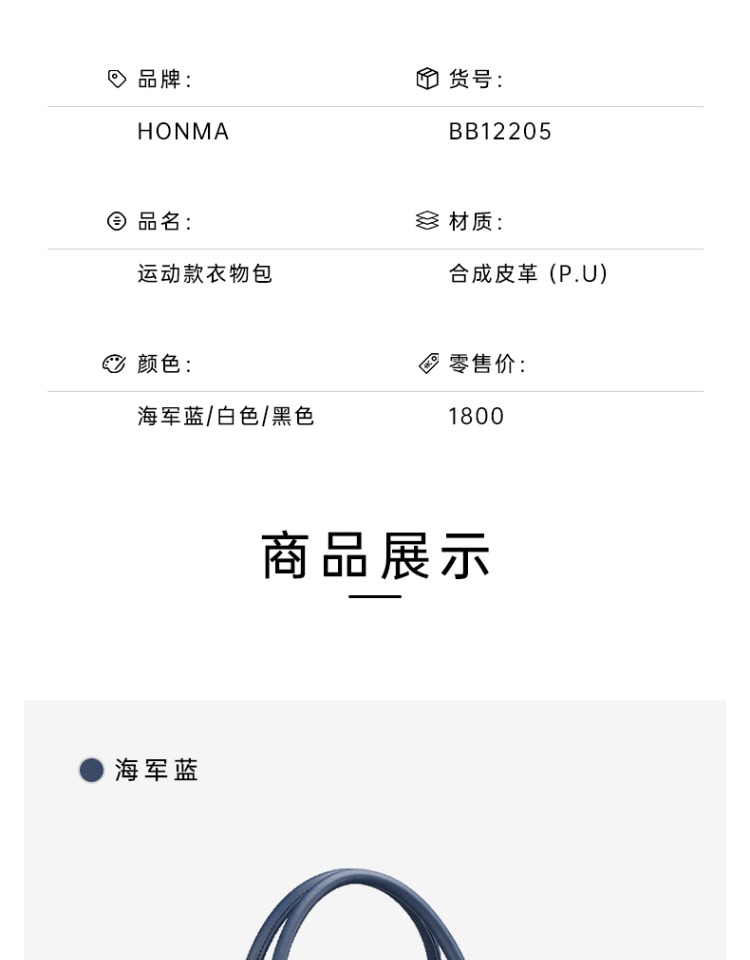 HONMA2022新款高尔夫衣物包大容量运动健身包BB12205
