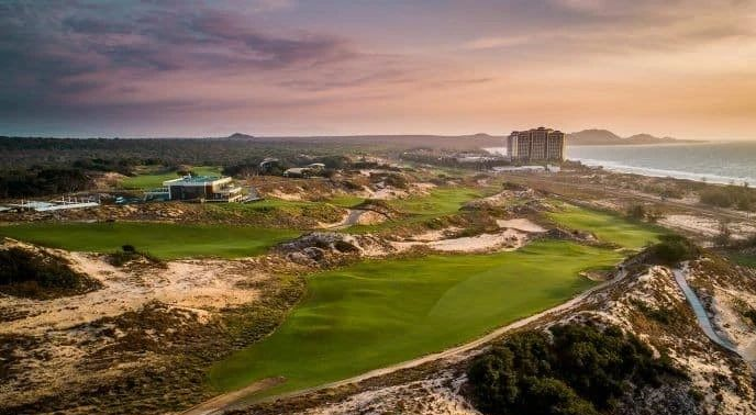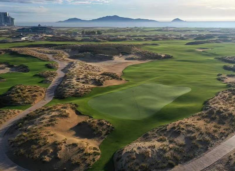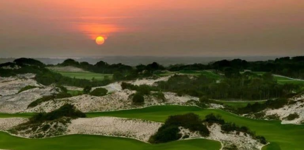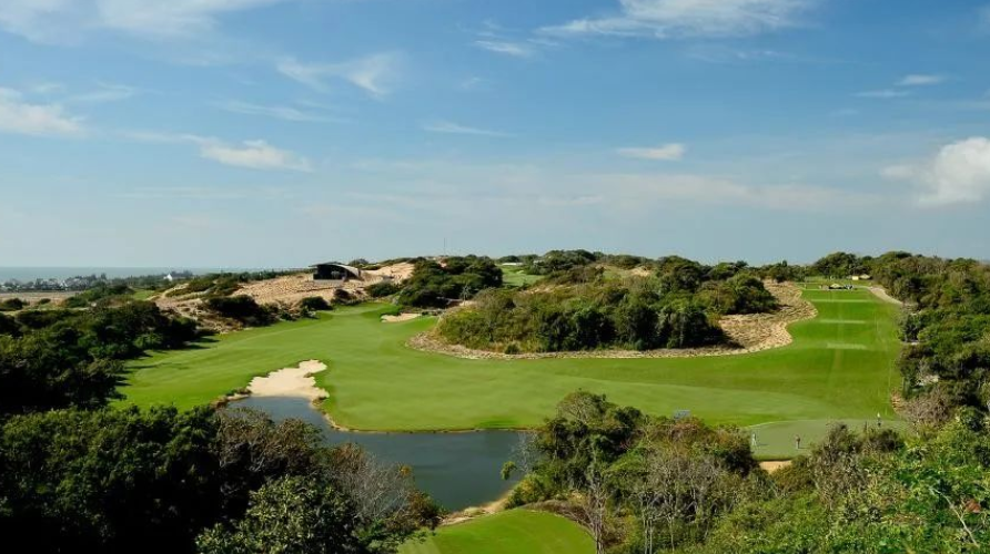 越南东海岸的高尔夫潜力才刚刚开始被发现——广阔的沙丘和沿海植被为林克斯高尔夫而尖叫,如果度假村的开发不占据最好的位置的话。诺曼沙丘球场靠近东越南海(海滩的第16洞和第17洞部分)边缘,让人联想到内陆沙林球场,而不是林克斯,主要是因为大部分路线都设置在内陆。但是,这些球洞在灌木松树的部分来回穿梭,被清晰的海角和海湾沙坑、三个可到达的短标准杆 4 杆以及渗入空洞和沙地的紧凑草皮类型生动地呈现在诺曼设计组合中。