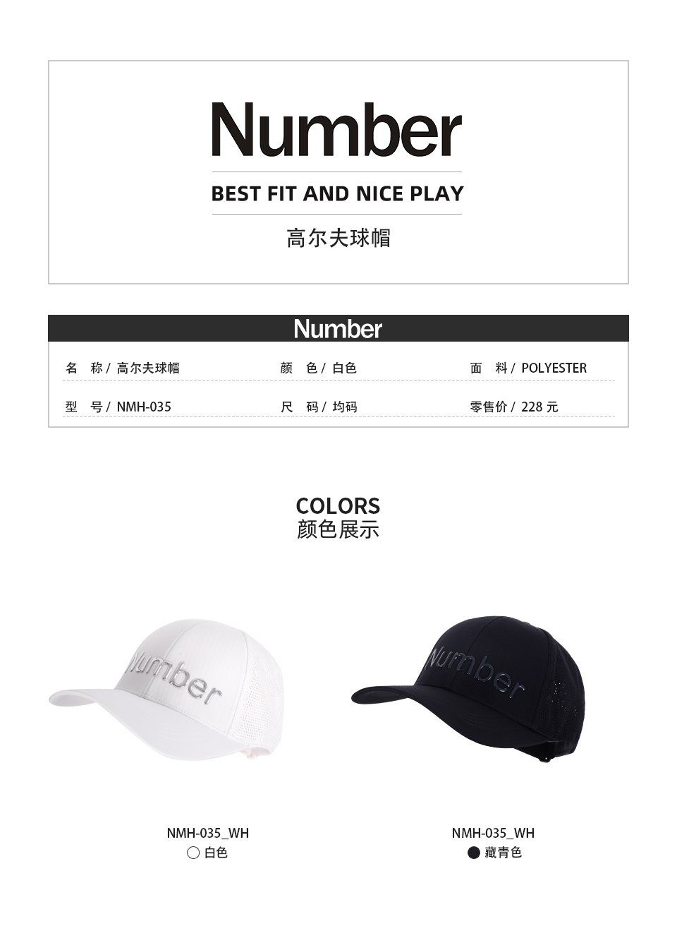 Number男士高尔夫球帽 吸汗内里透气舒适 有顶帽 NMH-035