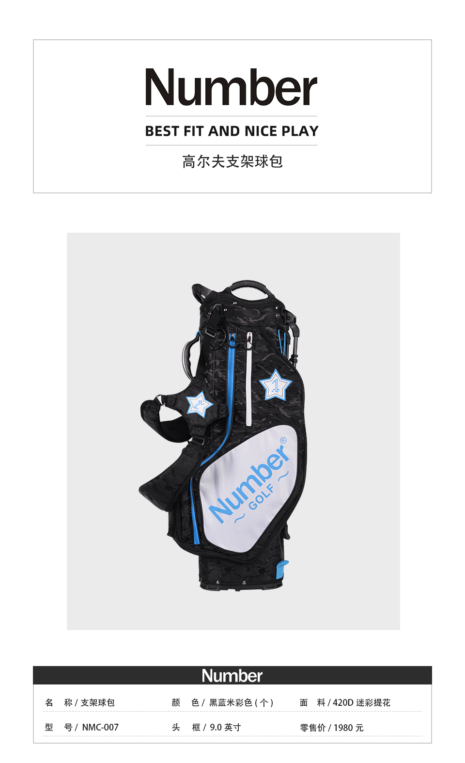 Number 高尔夫球杆包伸缩拖轮NMC-006 可定制团队刺绣LOGO