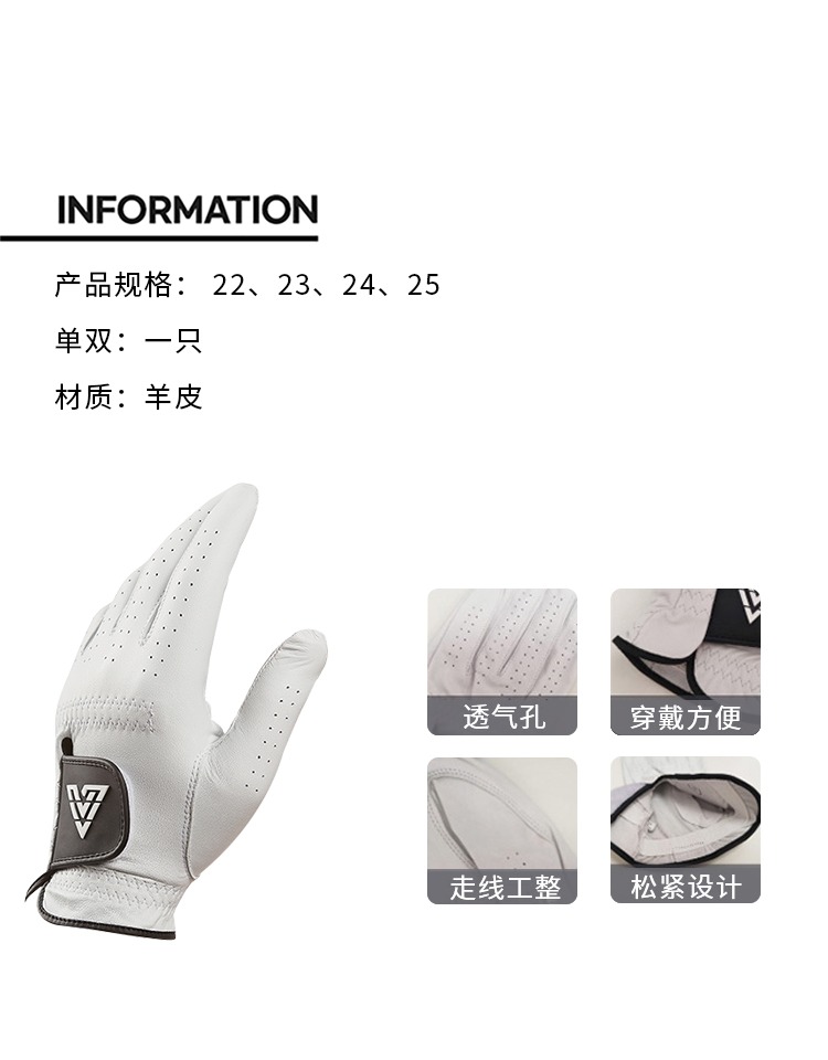 Volvik高尔夫球手套男士舒适透气耐磨小羊皮防滑golf用品