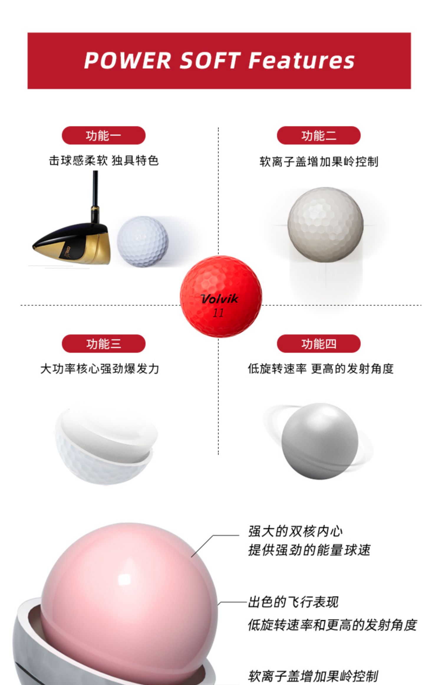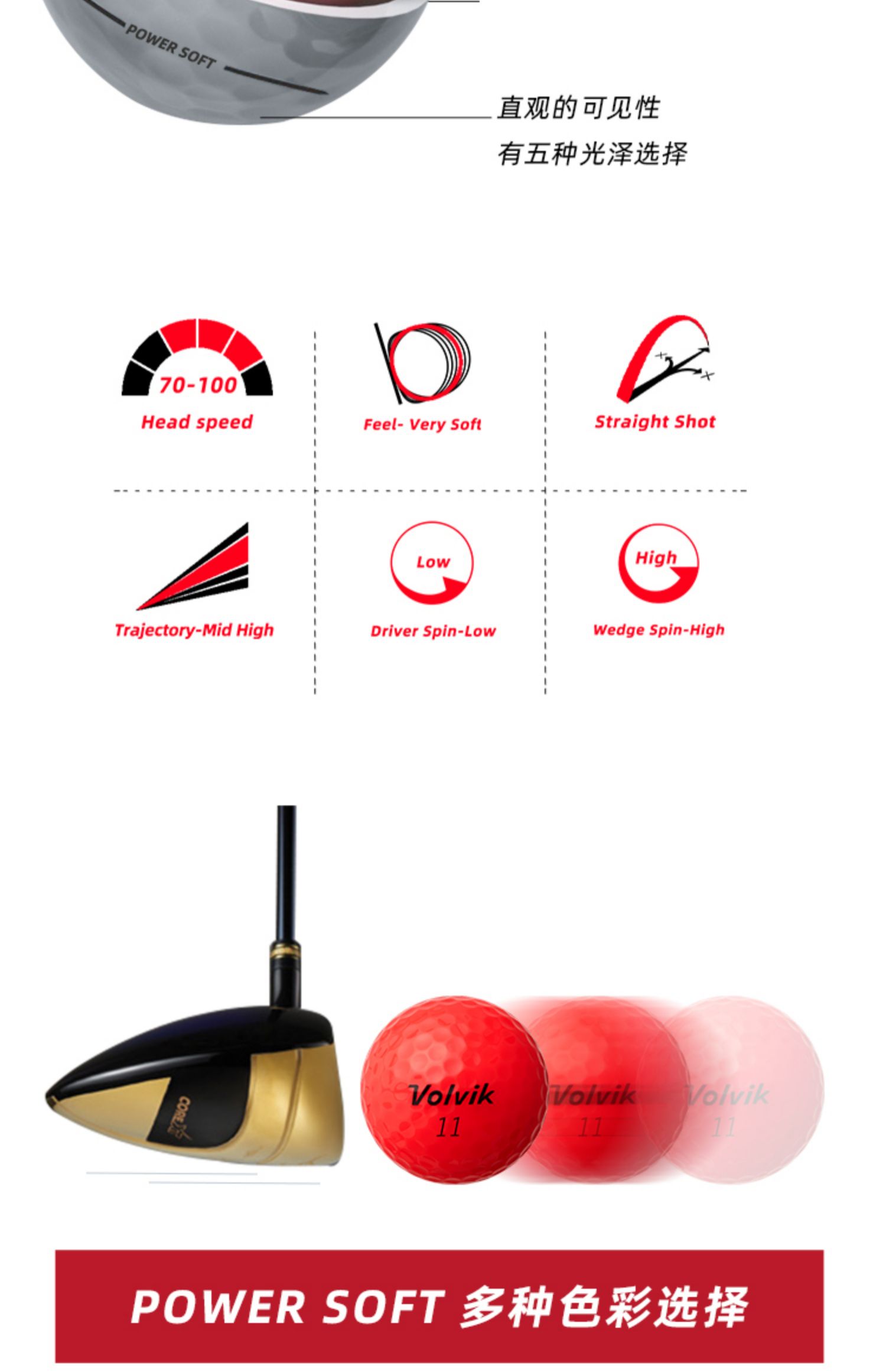 Volvik高尔夫彩球POWERSOFT光面两层12粒新手golf礼物用品