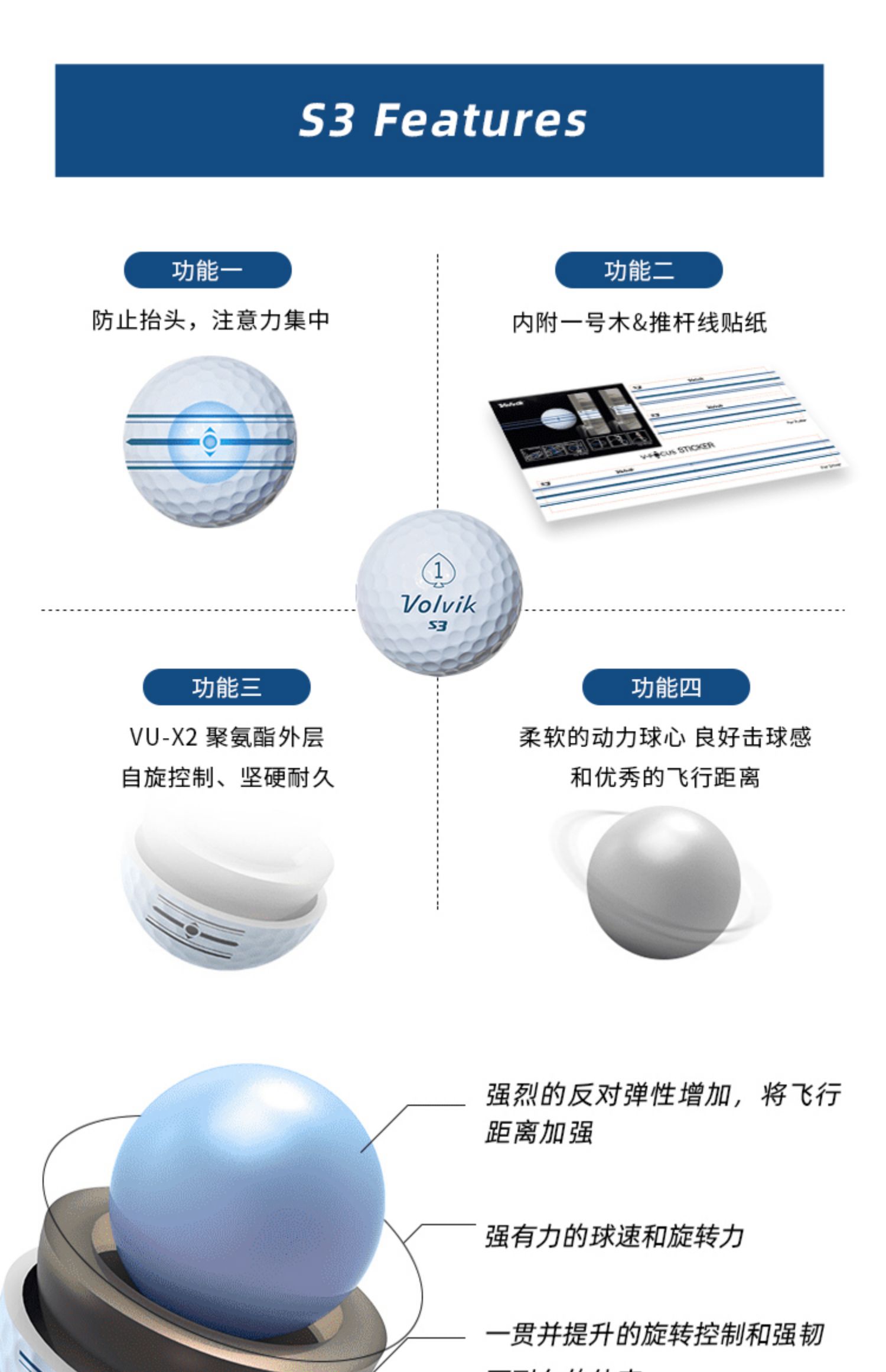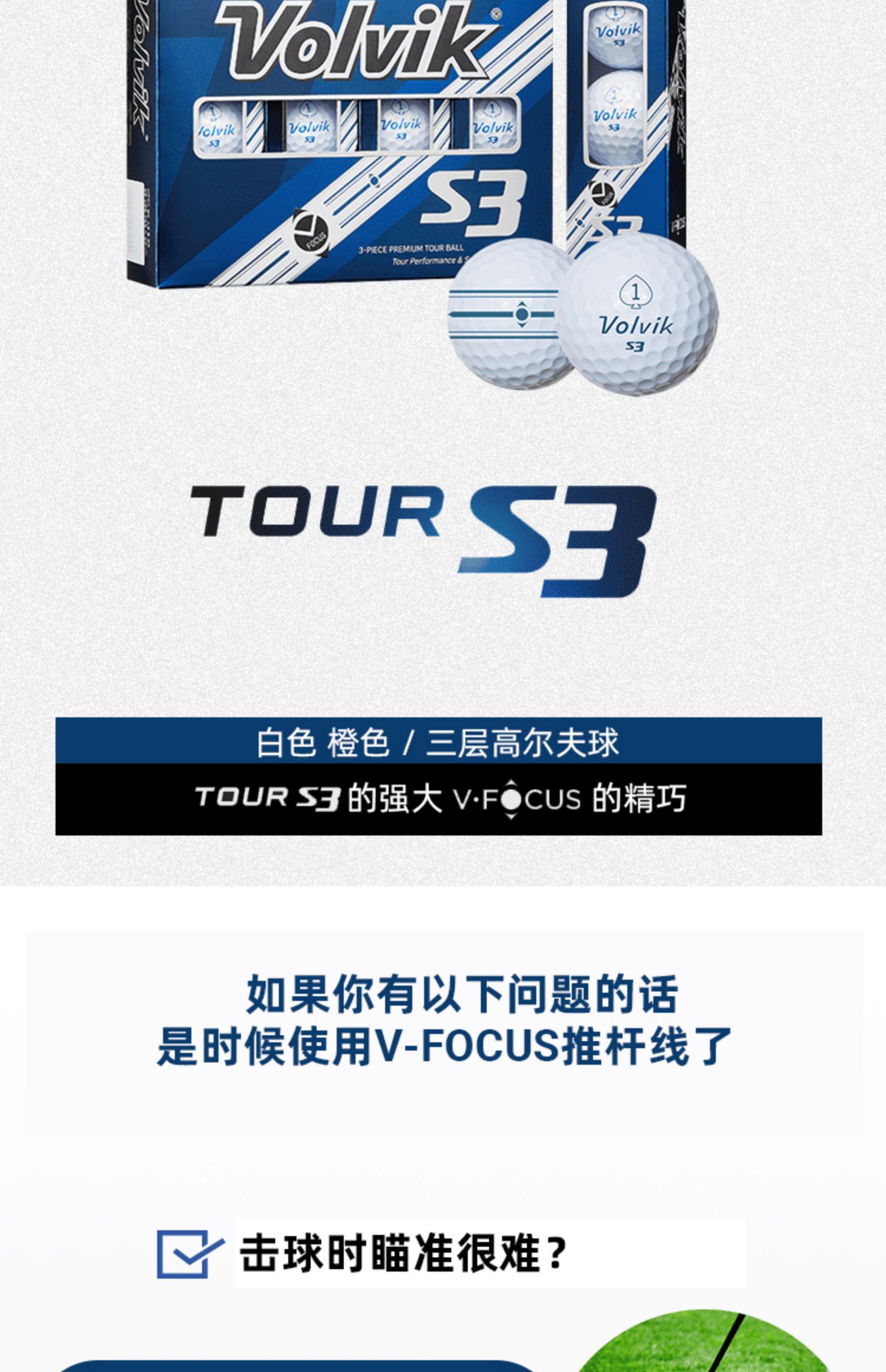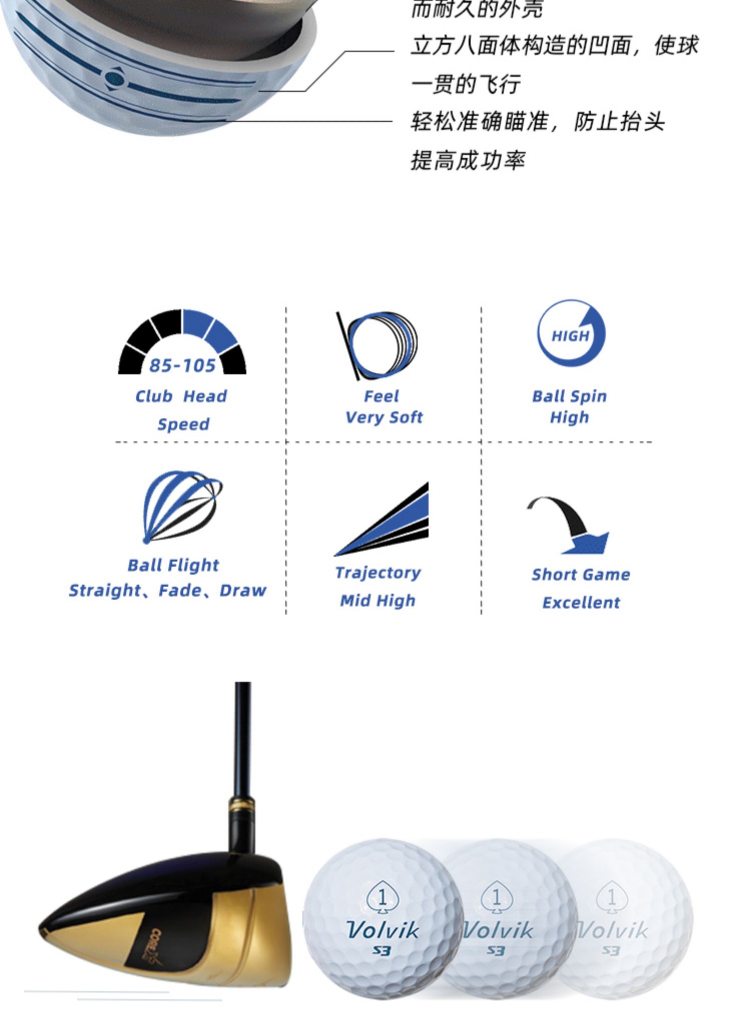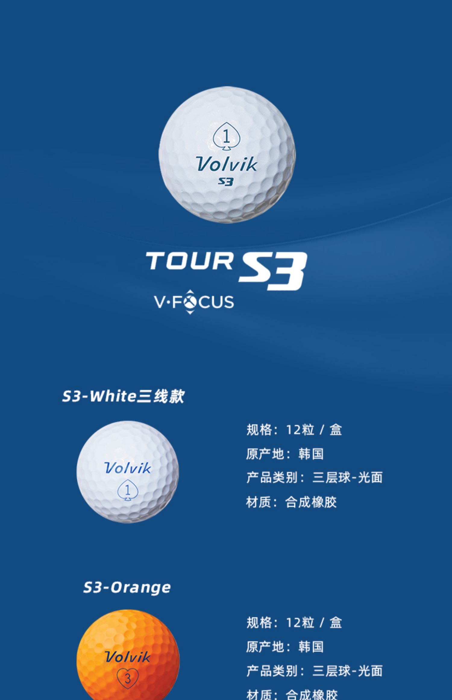 Volvik高尔夫彩球S3三层光面12粒职业定制golf礼盒礼品用品