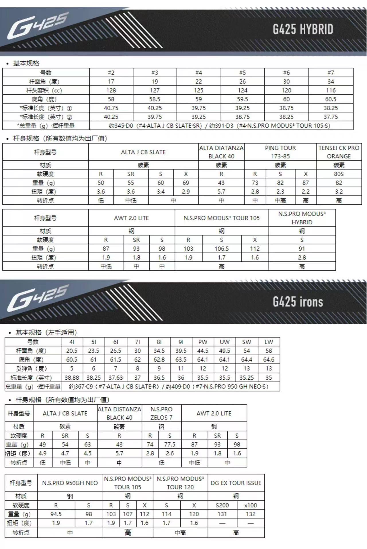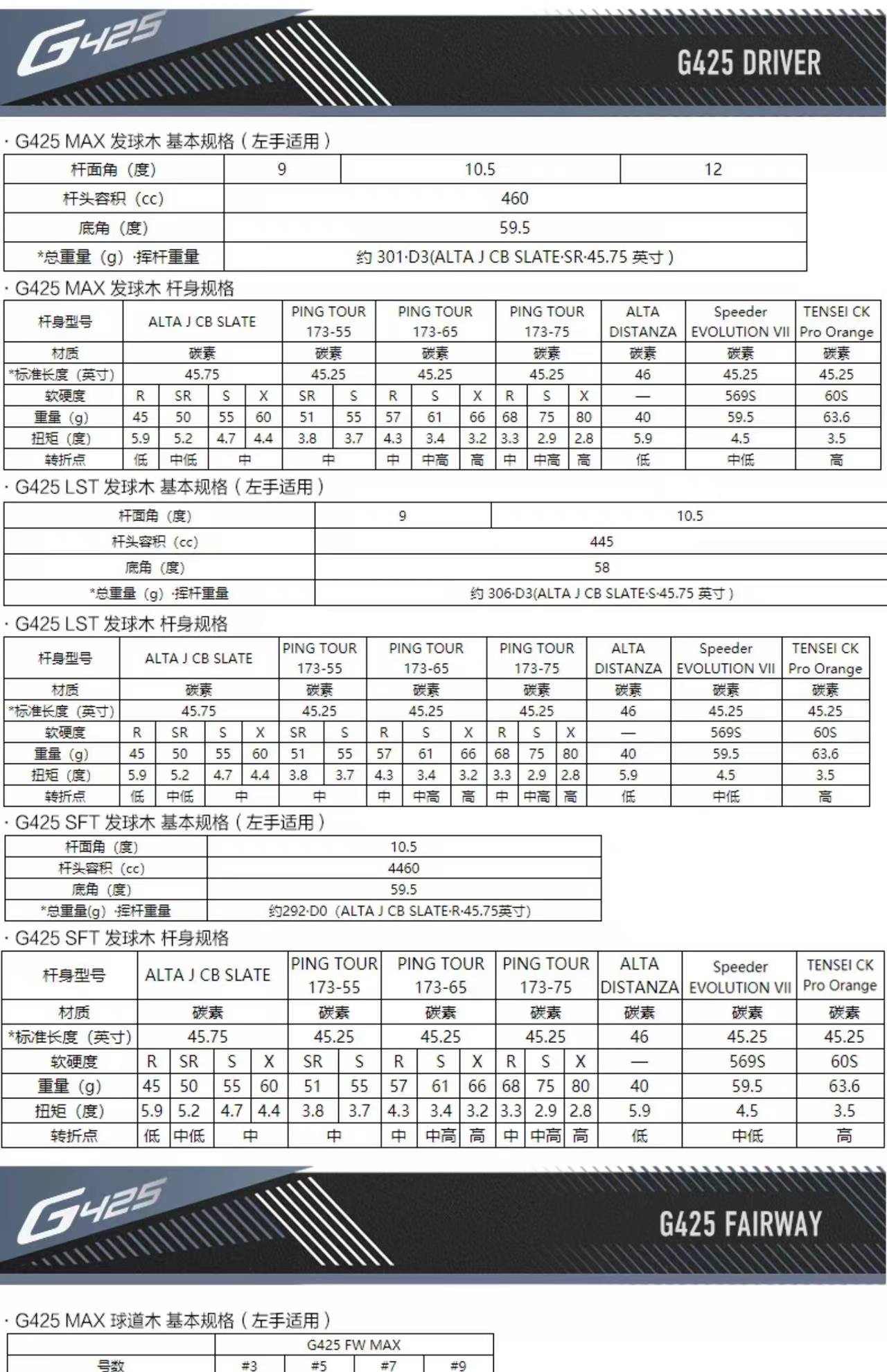 PING高尔夫男士G425球杆