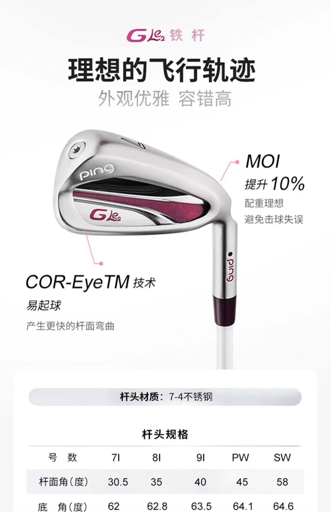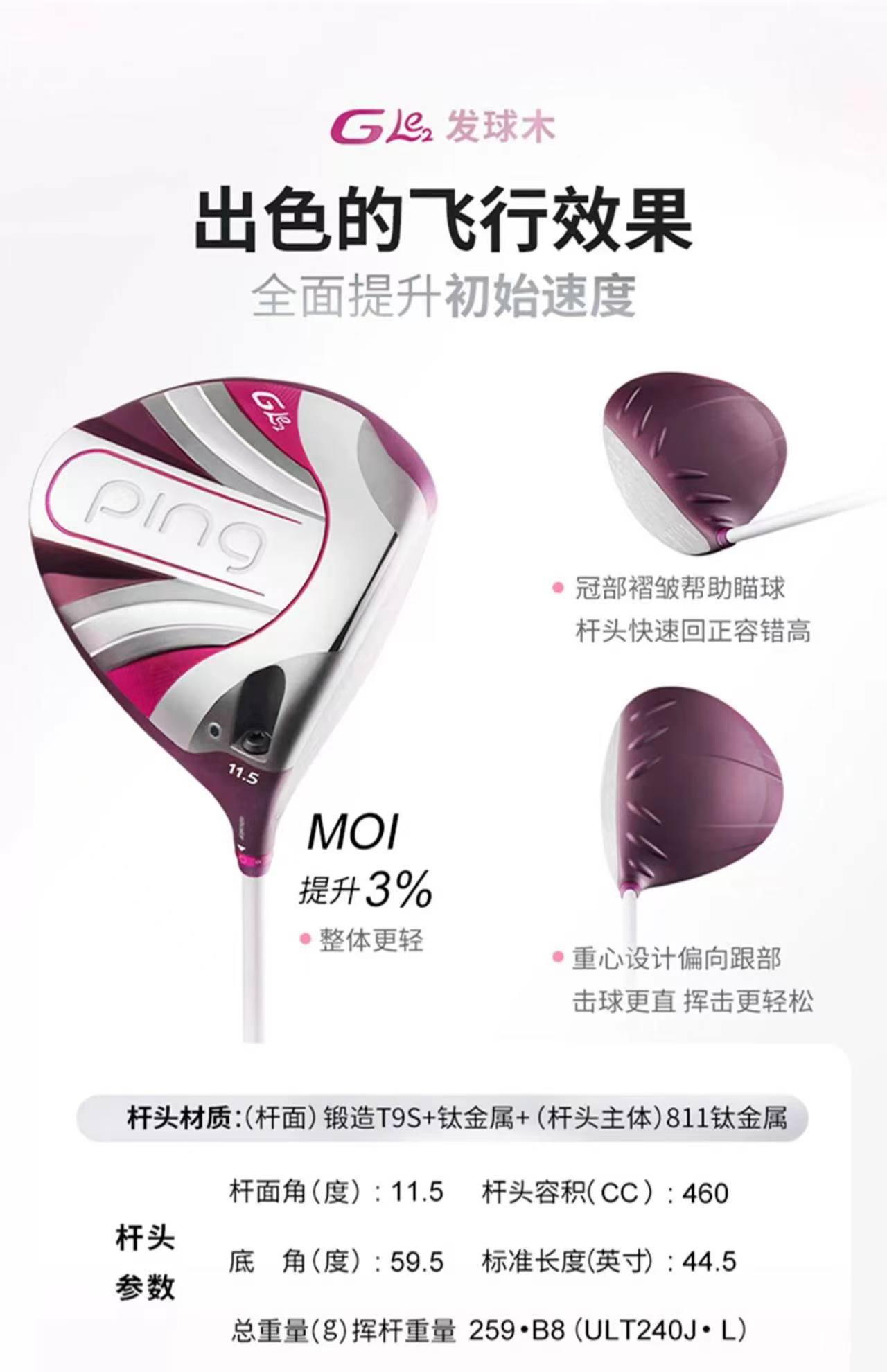 PING高尔夫正品球杆新款女士Gle2轻量化带杆头套球包golf组合套杆