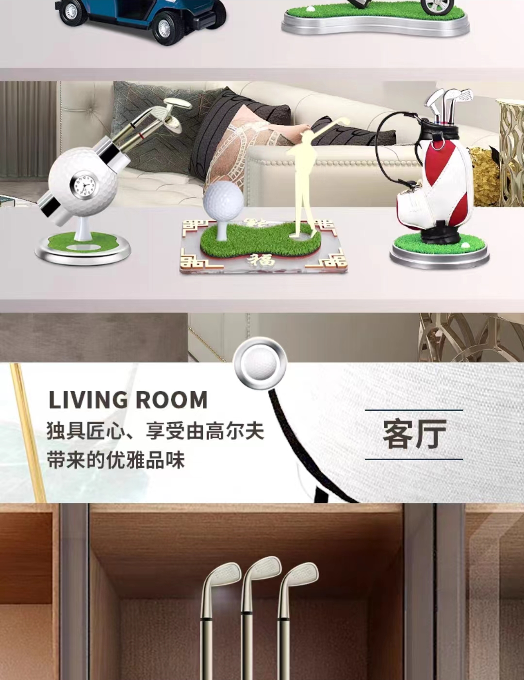高尔夫人物像火柴人创意金属雕塑软装饰品摆件