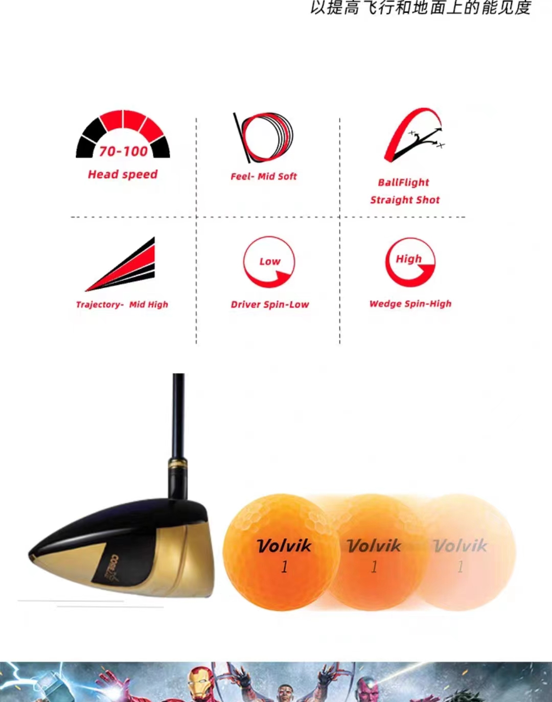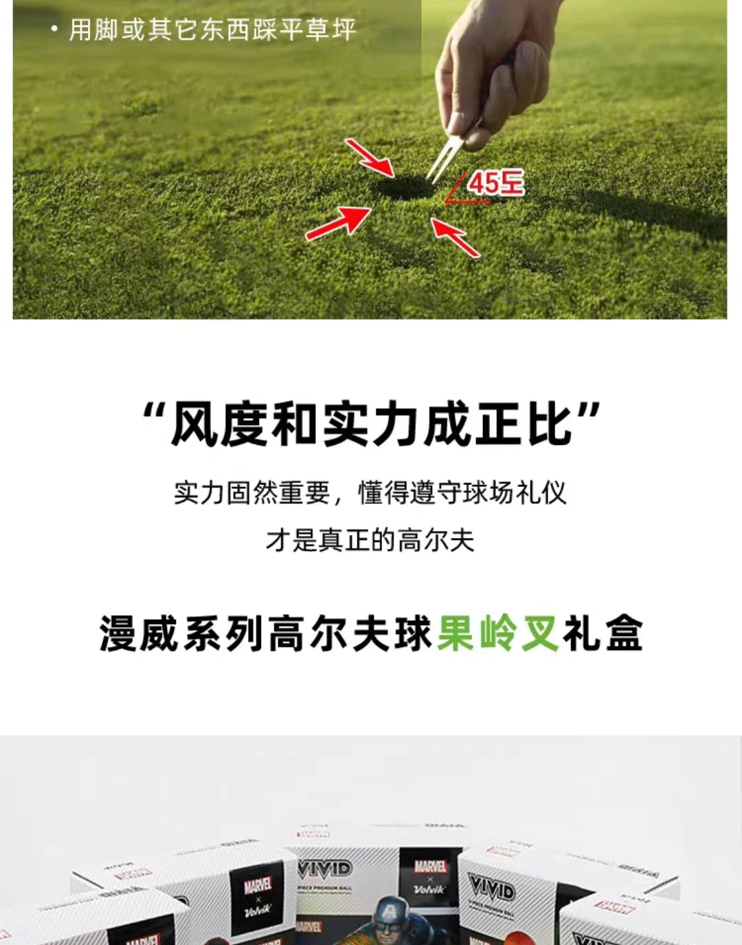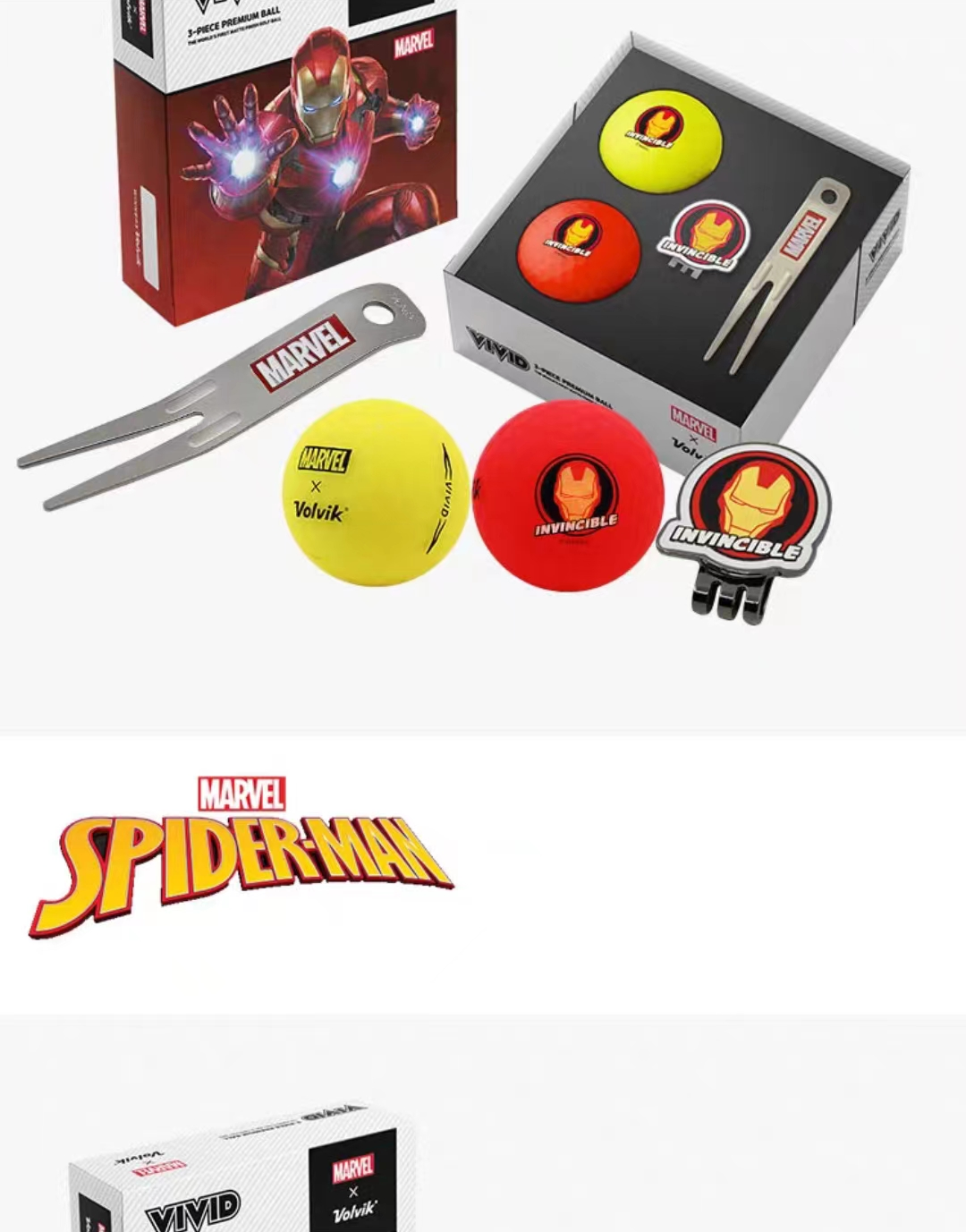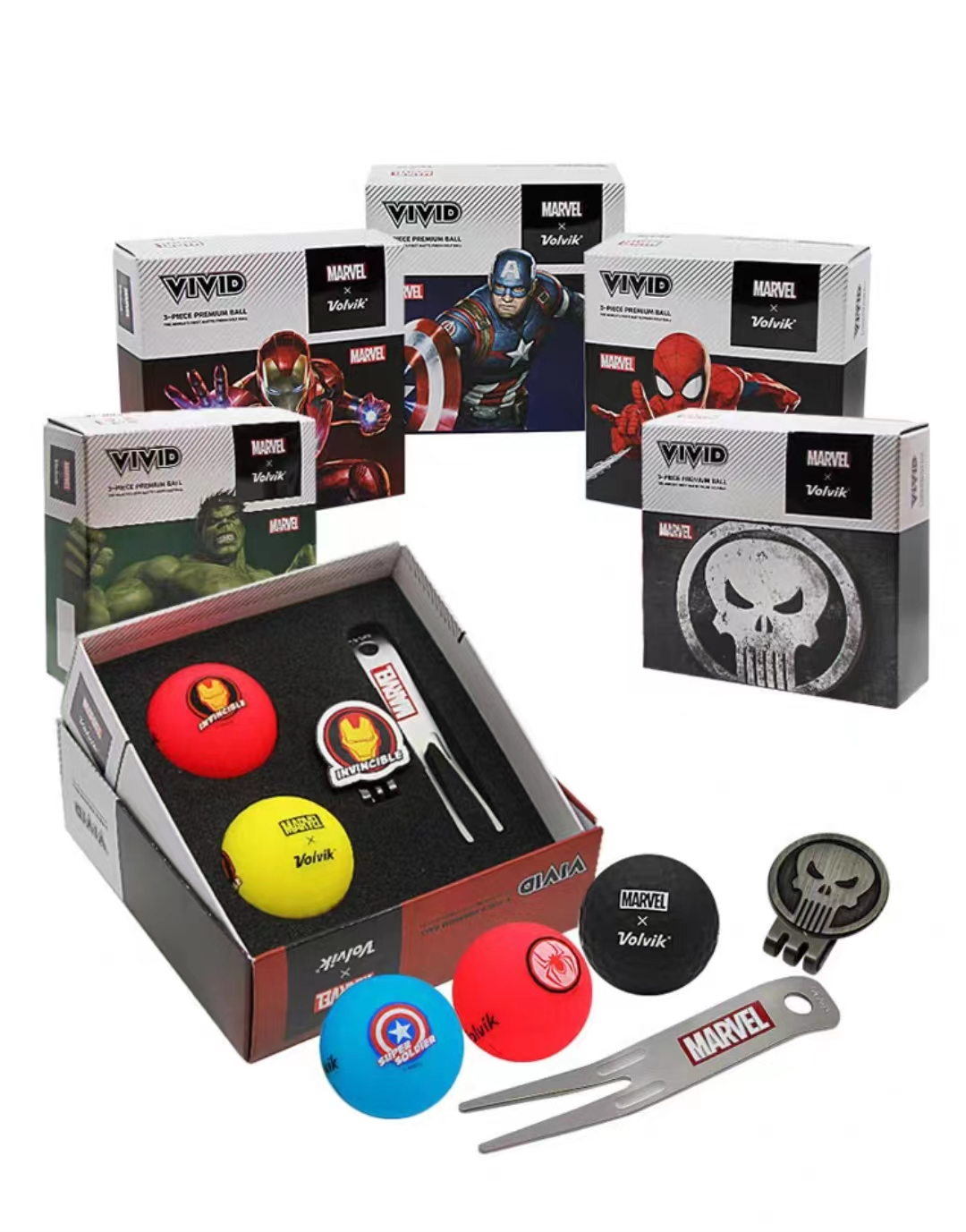 Volvik沃维克高尔夫球漫威礼盒VIVID哑光三层2粒+1MARK+果岭叉: