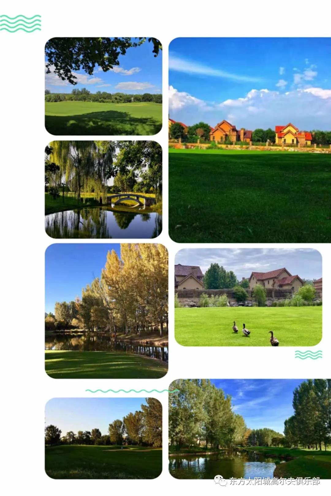 东方太阳城高尔夫俱乐部球场,总占地面积70亩,拥有一个标准18洞高尔夫球场和及30个打位的灯光高尔夫练习场。18洞全长7100码的专业球场,设计风格为内陆平原球场,利用场地内的自然湖泊、小溪水渠,形成自然与人文的结合。穿过高大茂盛的树林,可以欣赏到湖泊、草坪和优美社区环境浑然一体的天然美景。