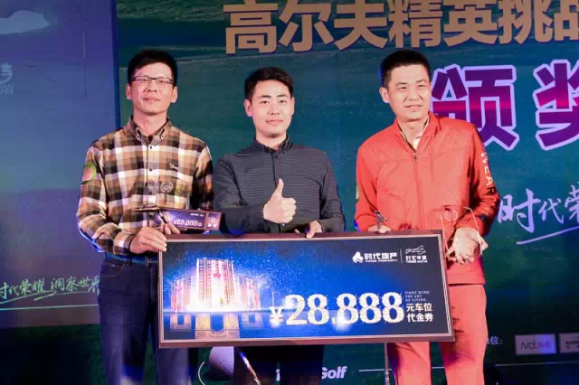 本次总决赛最激动人心的亮点是净杆冠军获得奥迪A3轿车一辆。在颁发最后大奖时刻,主持人宣布净杆71.4的牟峻松获得净杆亚军并上台一个HONMA球包奖品。这个时候,戏剧的一幕发生了,当宣布净杆冠军净杆69的韩XX时,场内没人反应,组委会紧急联系,其刚离开已上高速。根据规则,一部进口价值不菲的奥迪A3汽车顿时砸在了牟峻松的头上。大家以为这已经是最不可思议的了,据悉,牟峻松选手在初赛成绩是净杆第六名,本无缘晋级总决赛,但因颁奖晚宴时3、4、5名提早退场,其顺延成季军而获得总决赛资格。你相信这世界充满奇迹,奇迹就会发生。牟先生跟我们分享道:“很高兴获得这个奖项,这次总决赛做的很成功,各方面都按专业赛事执行,特别是每组配一个记分员,确保分数绝对公平公正,感谢时代地产给我们这次比赛机会,希望来年的赛事做的更多更好!”