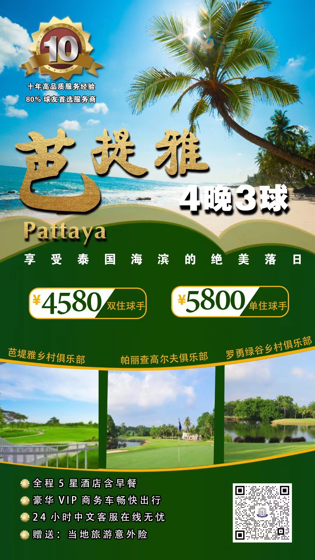 芭提雅+帕丽查高+罗勇绿谷5天4晚3球