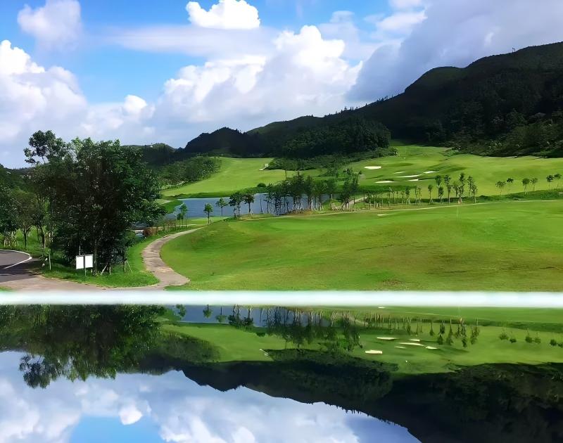 Surrounded by mountains on three sides, the course is nestled among peaks, lush trees, intersecting streams, connected reservoirs, and an expansive basin. The environment is exceptionally beautiful, offering wide-open vistas. Stretching before visitors is a unique rolling terrain course, both challenging and entertaining. Standing here, one naturally feels a sense of tranquility and serenity, with the nearby layers of forests, wildflowers, orchards, and vegetable fields at the foot of the mountains adding to the picturesque charm.